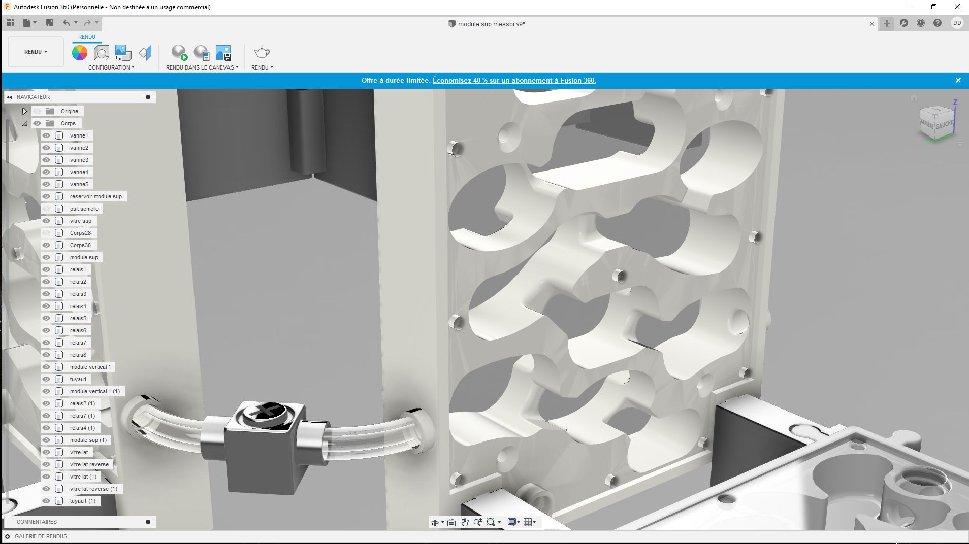 Bonjour à tous, Ayant envie de m'y remettre, et en ayant pioché pas mal d'idées à droite et à gauche comme le système de mèche et de réservoir, ainsi que les portes/vannes, j'ai ressorti fusion 360 du placard. Je n'ai plus de colonie (mes Messor barbarus et leur biorama ont été offertes à l'école de...
