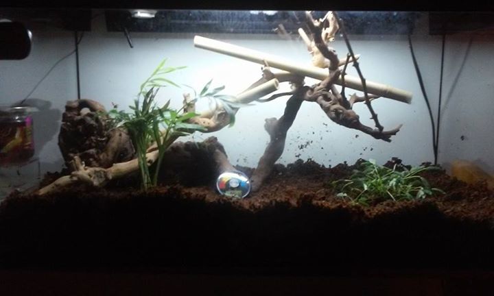 Le néon fait monter la température vers les 28°C, les bambous font à peu près 1.5 cm de diamètre, (je pense les avoir fait trop large).