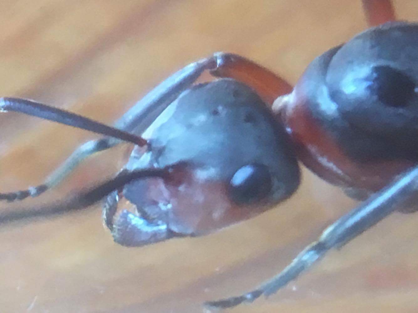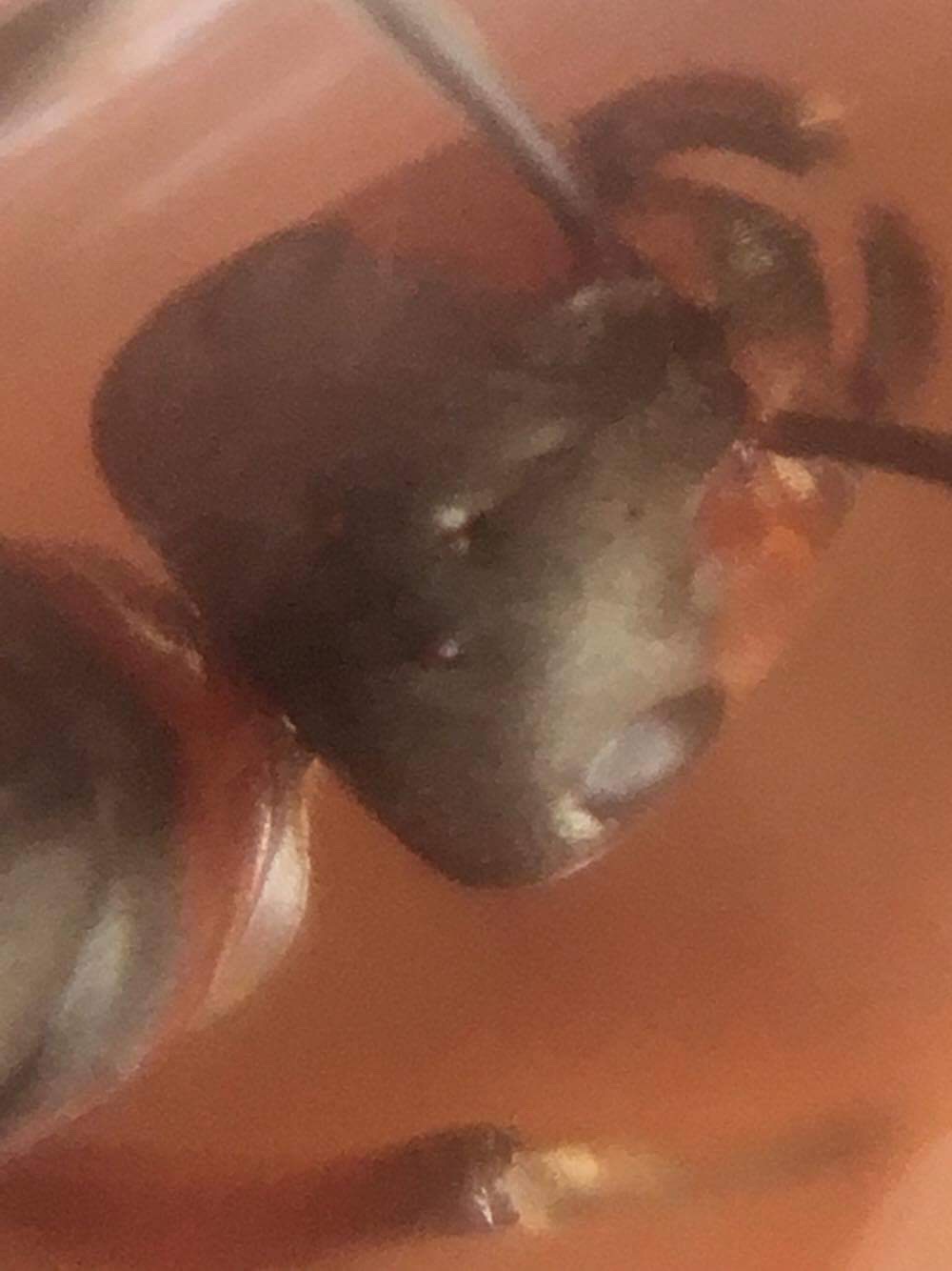 Je n'aurai pas mieux comme cliché. Je viens de voir qu'elle possède 3 points en triangle sur la tête. Pas de pilosité sur la tête, par contre petite pilosité sur les mandibules ainsi que sur " les lèvres".