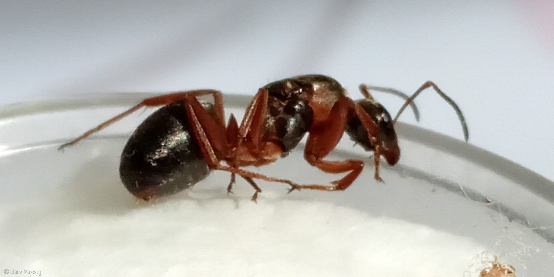 Formica rufibarbis de ce carnet celle qui montrait pour sa première année la plus belle santé, en plus d'être la plus grande et la plus colorée (coloration rouge allant jusqu'au début du