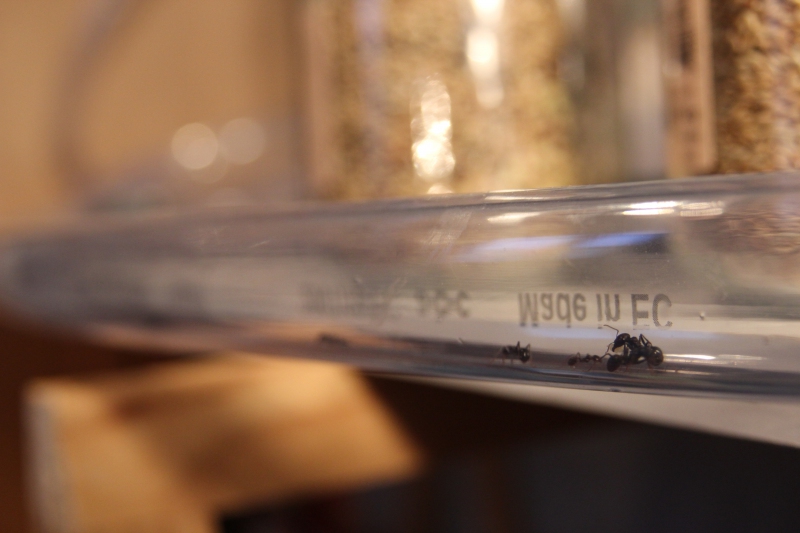 Un seul souci, pas mal de fourmis qui se font tuer par les autres. BobMessor avait rencontré ce problème avec sa colonie, je pense comme lui que la paraffine y est pour quelque chose...