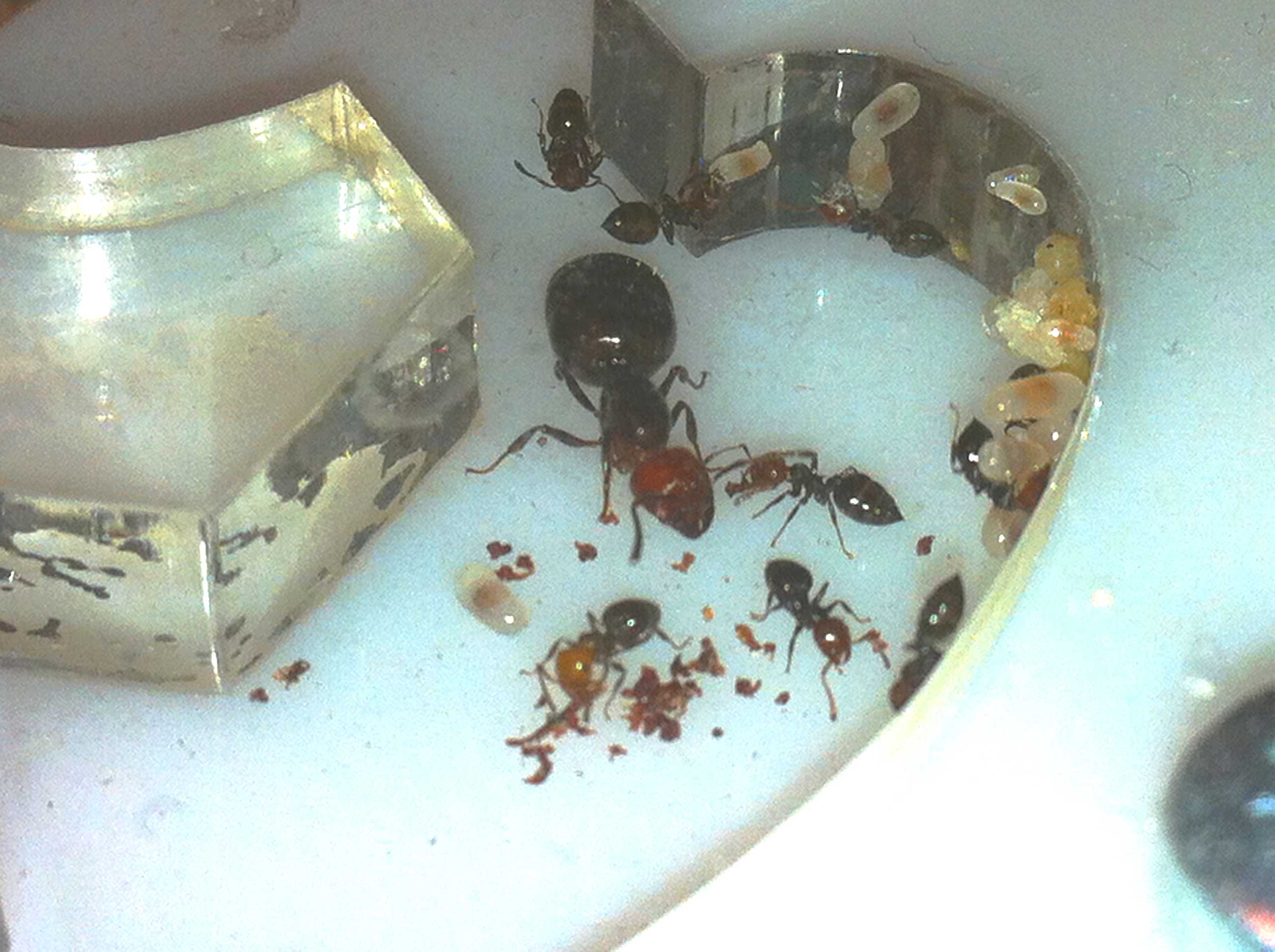 A ce jour, la fondation est au nombre de 16 ouvrières, une naissance avant le (les ?) drame(s), 5 nymphes, 10 larves et 5 œufs.