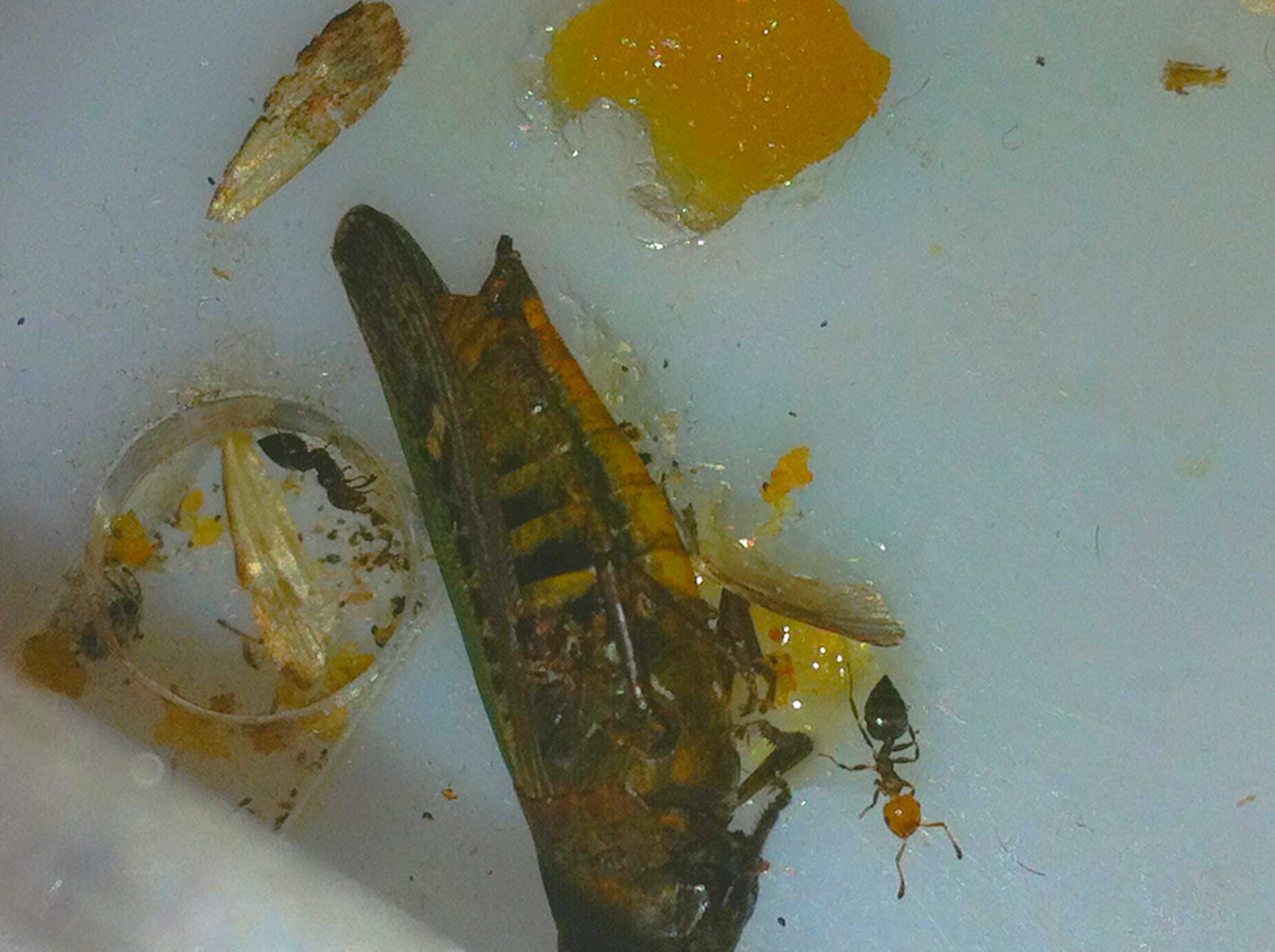 Elles consomment de tout, pas comme mon ancienne colonie, sauterelle, mouche, vers de farine, pseudo-miellat et surtout les mites