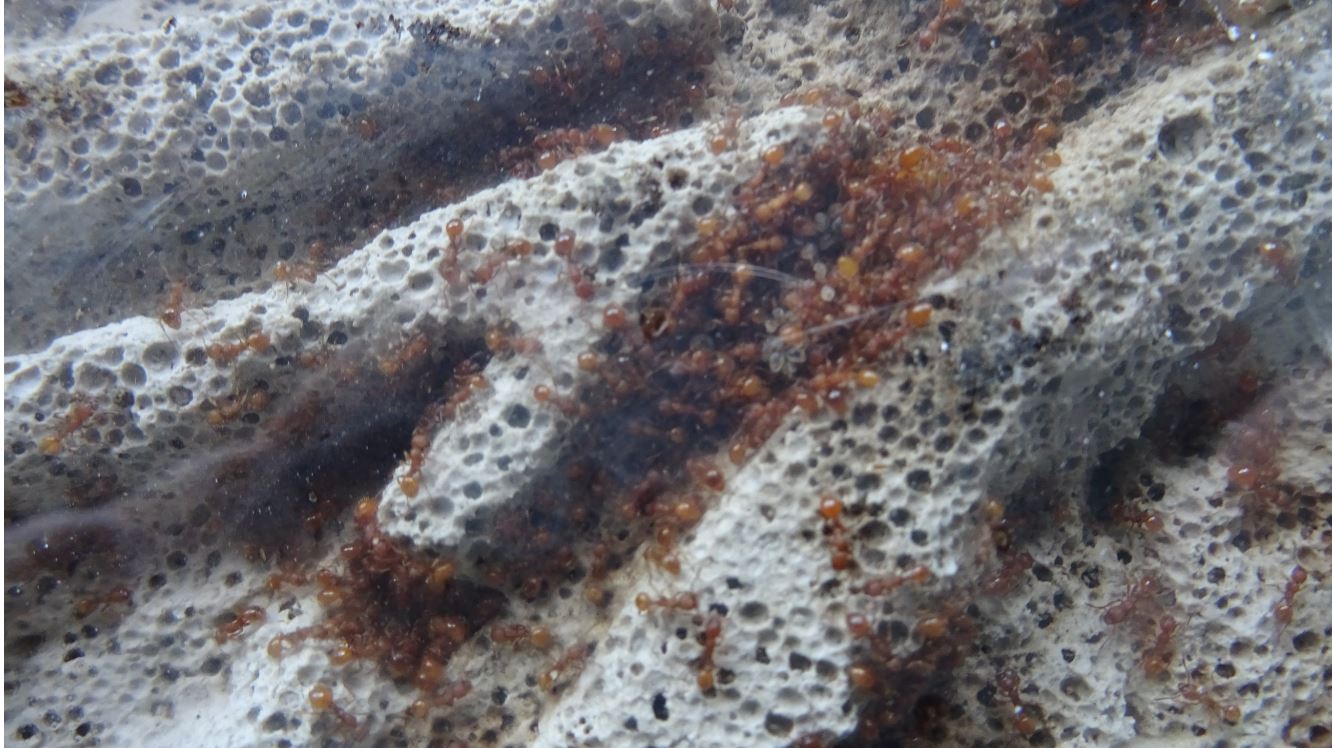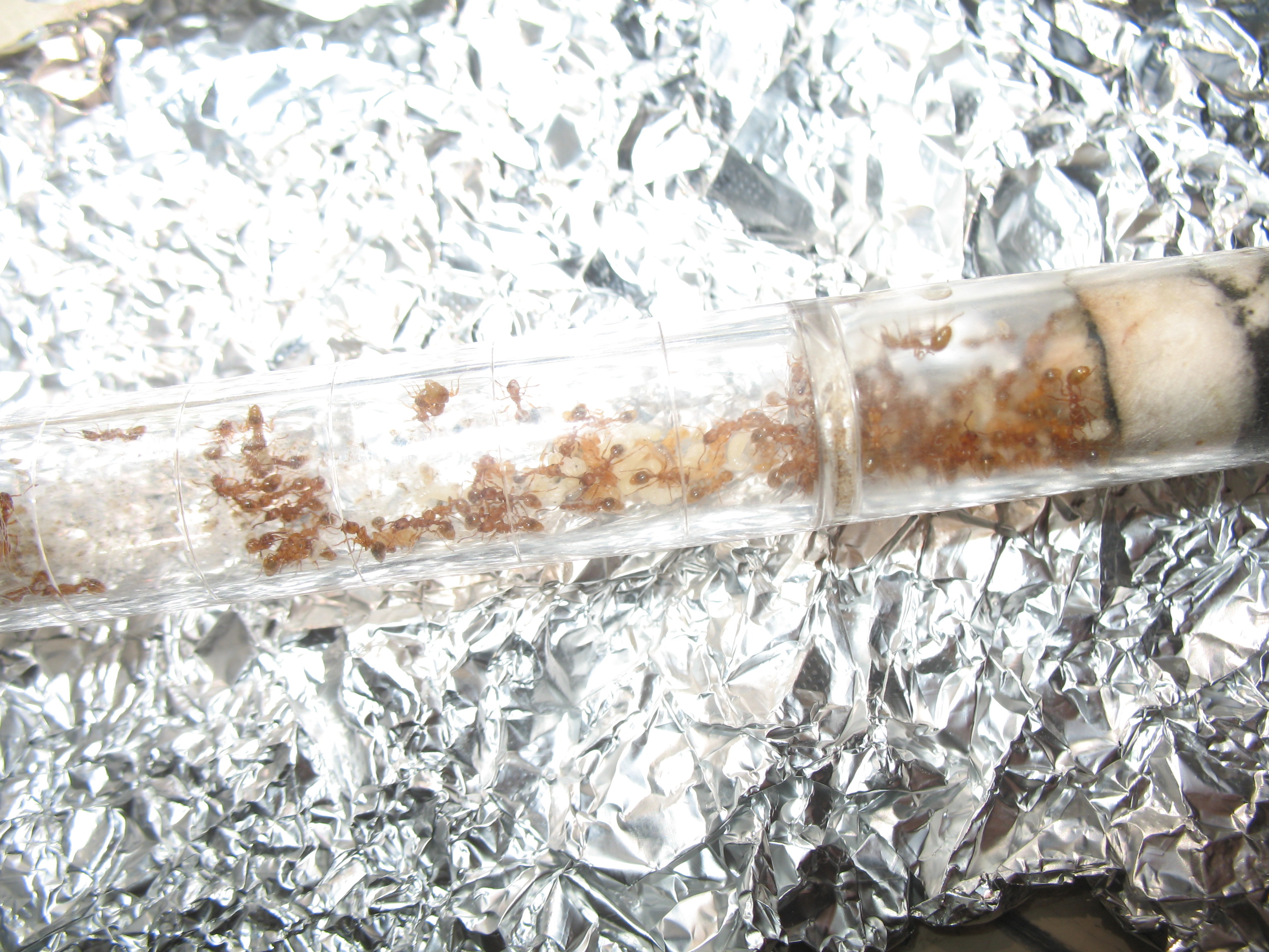 Connaissant la possible polygynie du genre, j'avais également essayé d'introduire une nouvelle reine fraichement trouvée (au même endroit) dans le tube mais celle-ci a été rejetée.