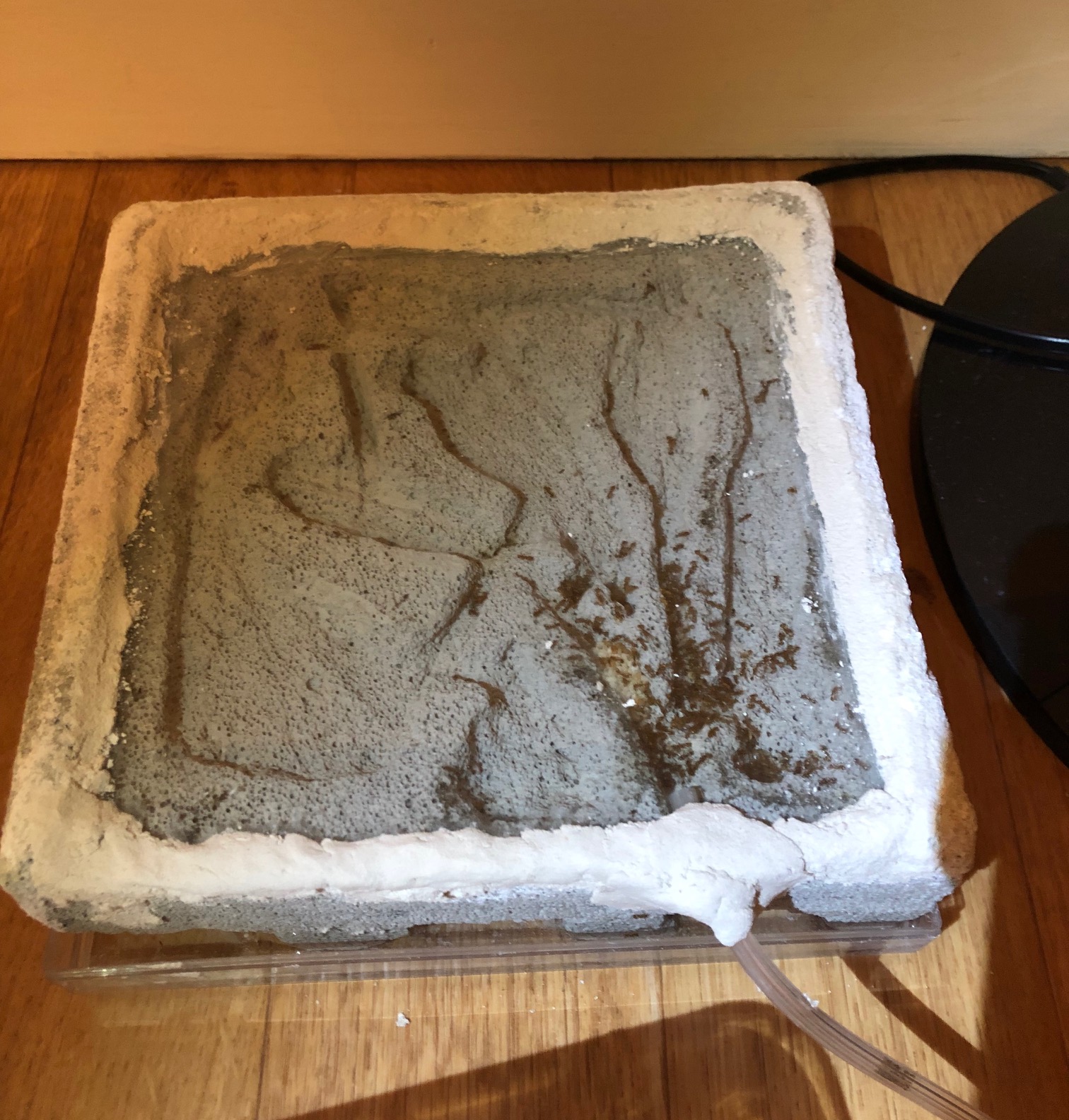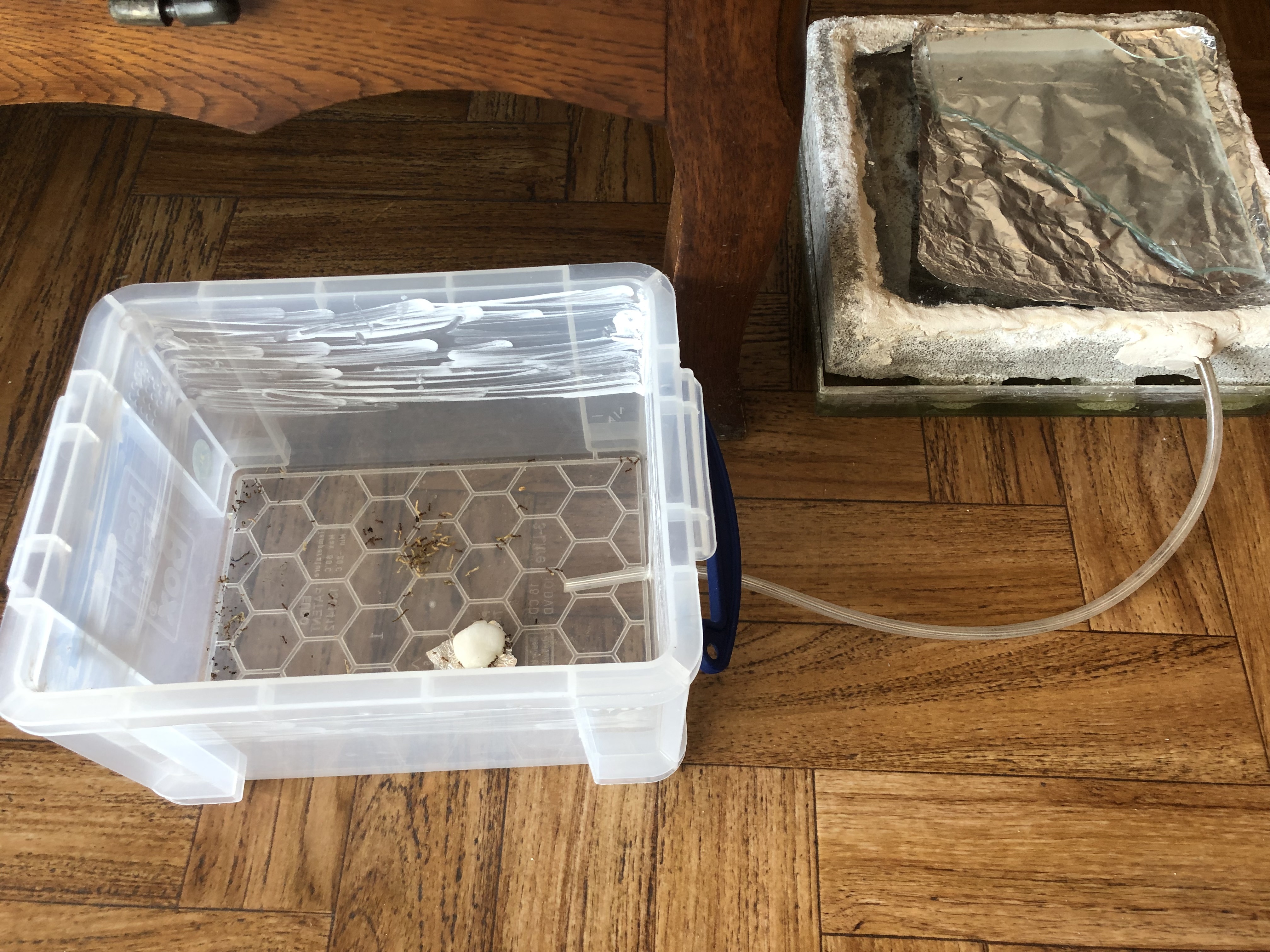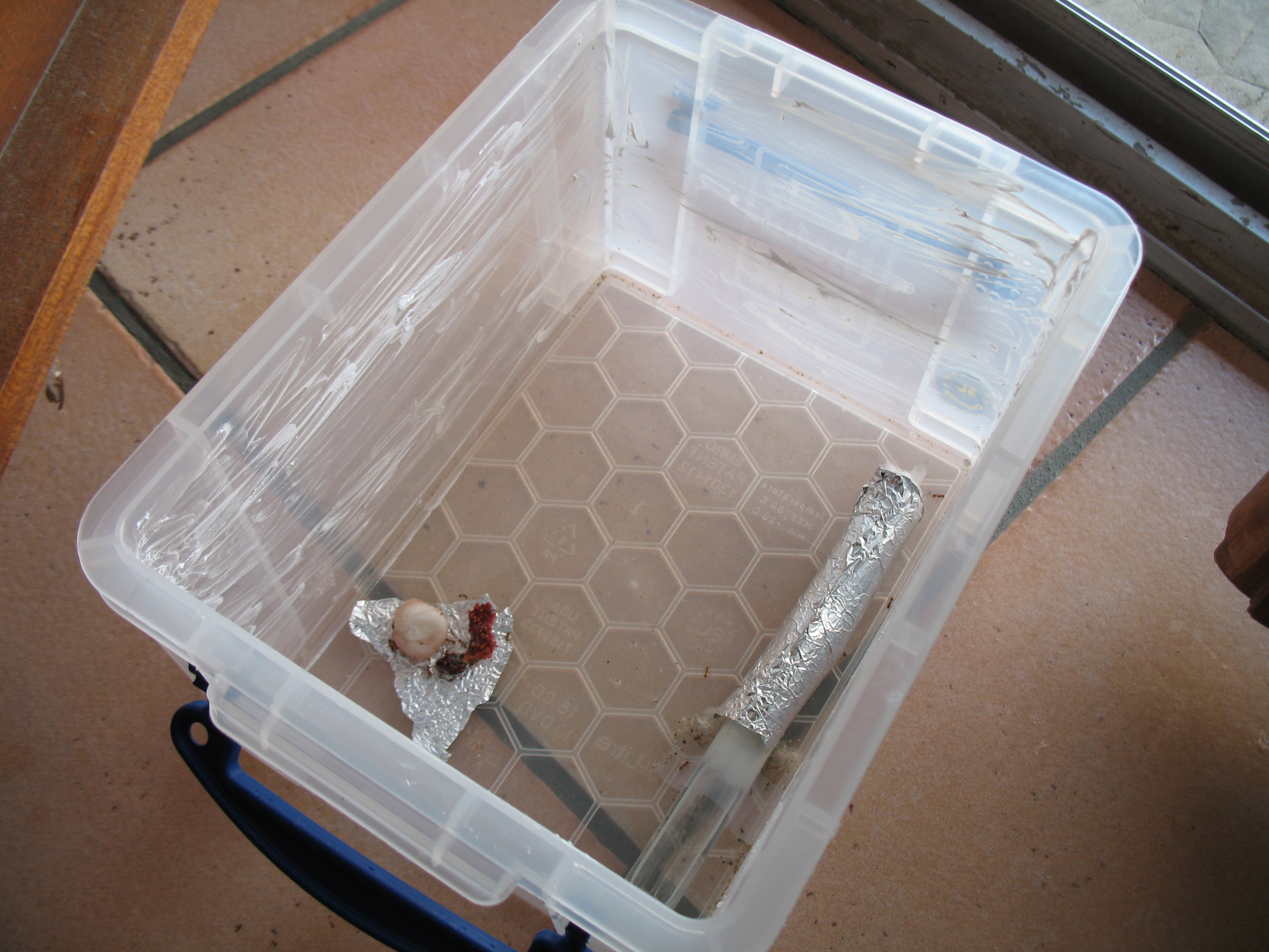 Ensuite ce sont des fourmis qui ont une faible possibilité de stockage de la nourriture, elles font peu (pas ?) de trophallaxies et tout le monde sort quand le repas est servi, ce qui rend l'observation intéressante. L'inconvénient c'est qu'elles sont plutôt du genre fragiles, elles peuvent facilement mourir en nombre pendant la diapause ou dès que l'humidité baisse trop, ce qui explique le nombre peu élevé d'ouvrières après 2 ans d'élevage.