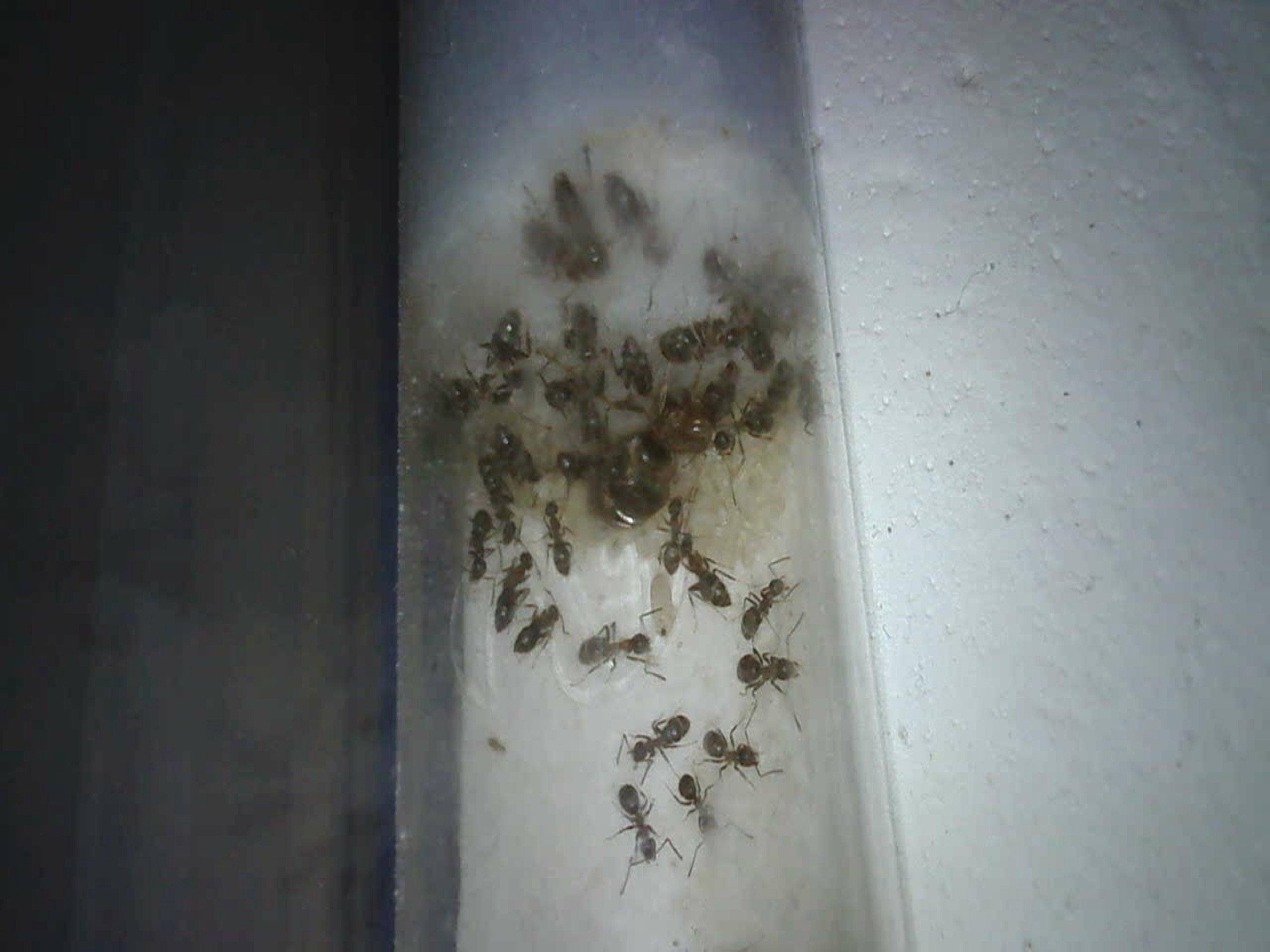 Il y a 13 ouvrières et du couvain. Transférées dans un tube qui est lui-même déposé dans une ADF, le développement a l'air de bien se poursuivre au regard du couvain qui prospère !
