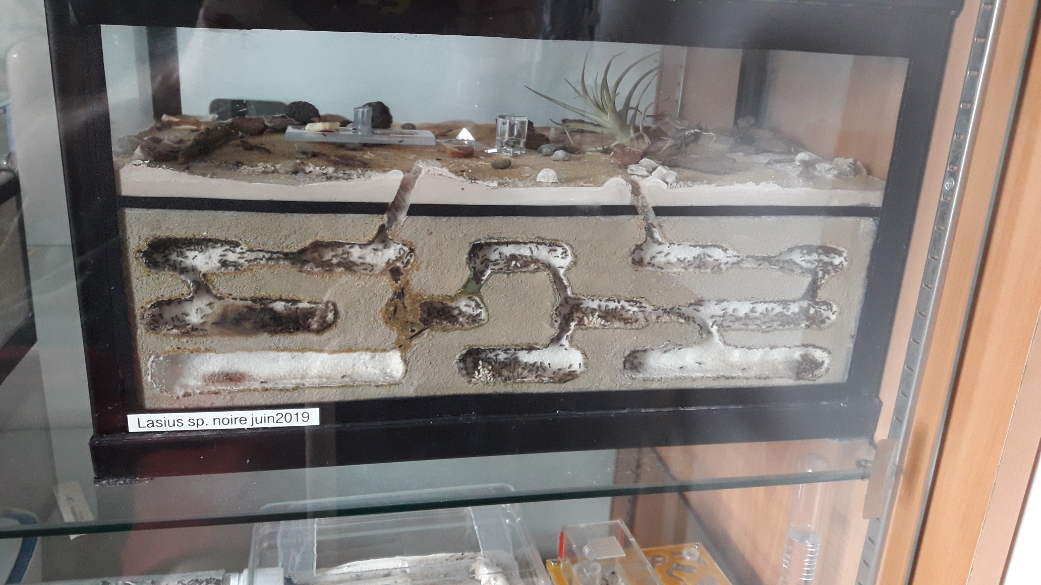 Mes 3000 petites Lasius niger m'ont quitté ! J'ai cédé la colonie en mars 2021. Mais si jamais vous avez l'occasion de passer dans le Vercors, n'hésitez pas à venir les voir ! Elles trônent désormais dans un bar/restaurant appelé "Le Jorjane" à Choranche ! Prochainement j'irai picoler un coup là bas et je vous ferai quelques photos !