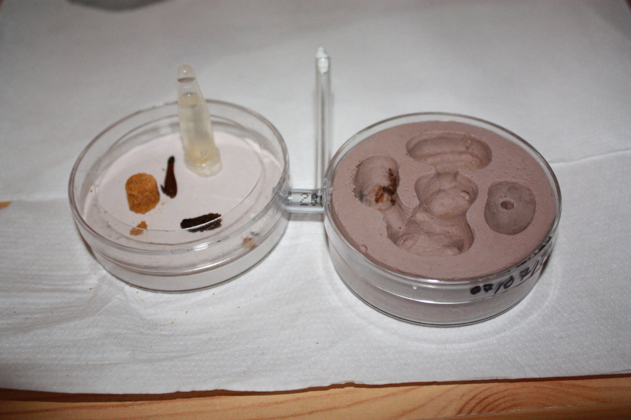 Sur la droite donc l'ADF avec au menu croquette pour chien dont une partie finement émiettée pour en faciliter le transport par les fourmis