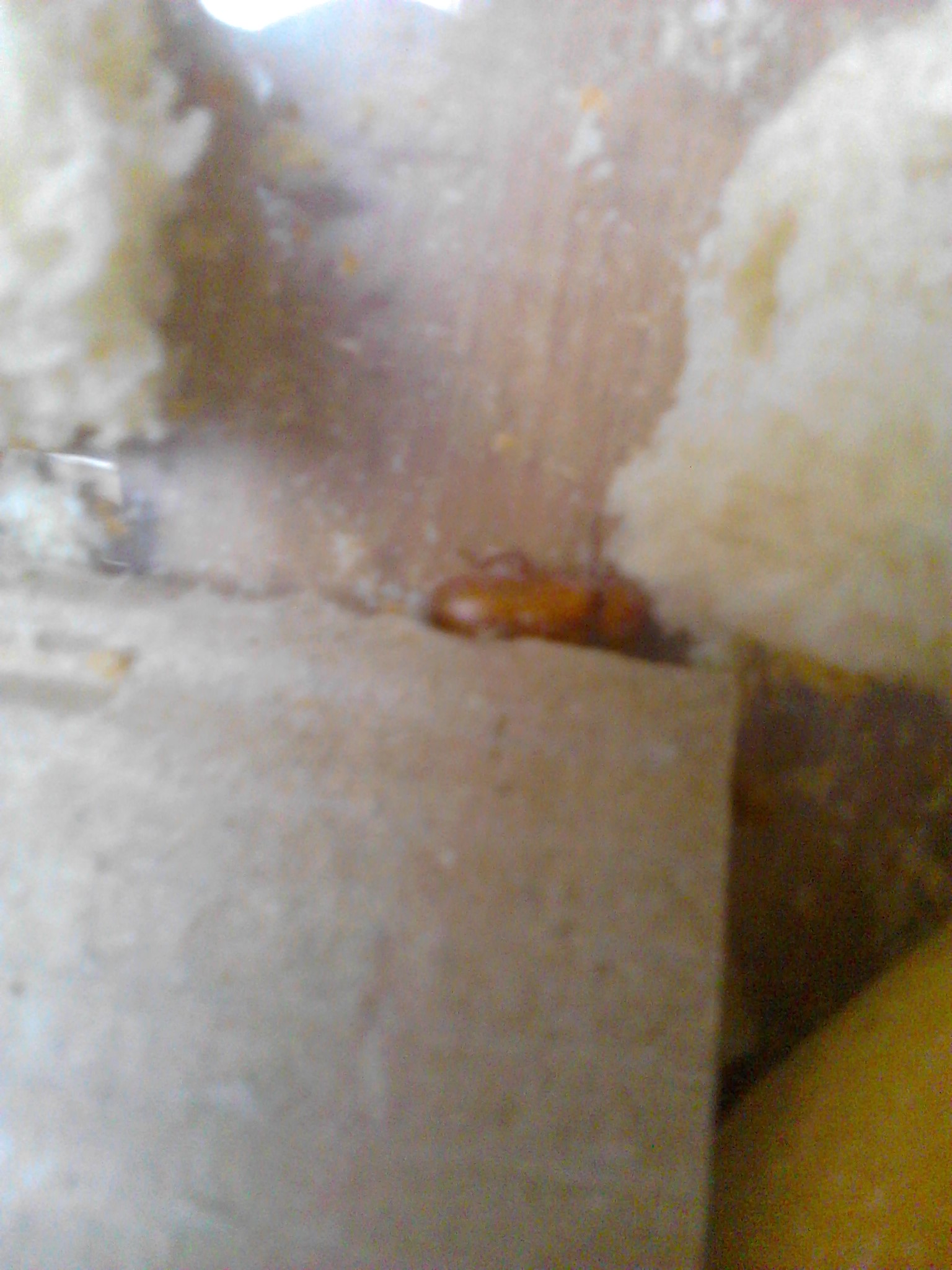 Je leur ai mis un 2eme coin ponte, le même système c'est à dire un récipient rempli de farine. Une femelle a dû y pondre, enfin je pense, il y un trou dedans d'un cm environ.