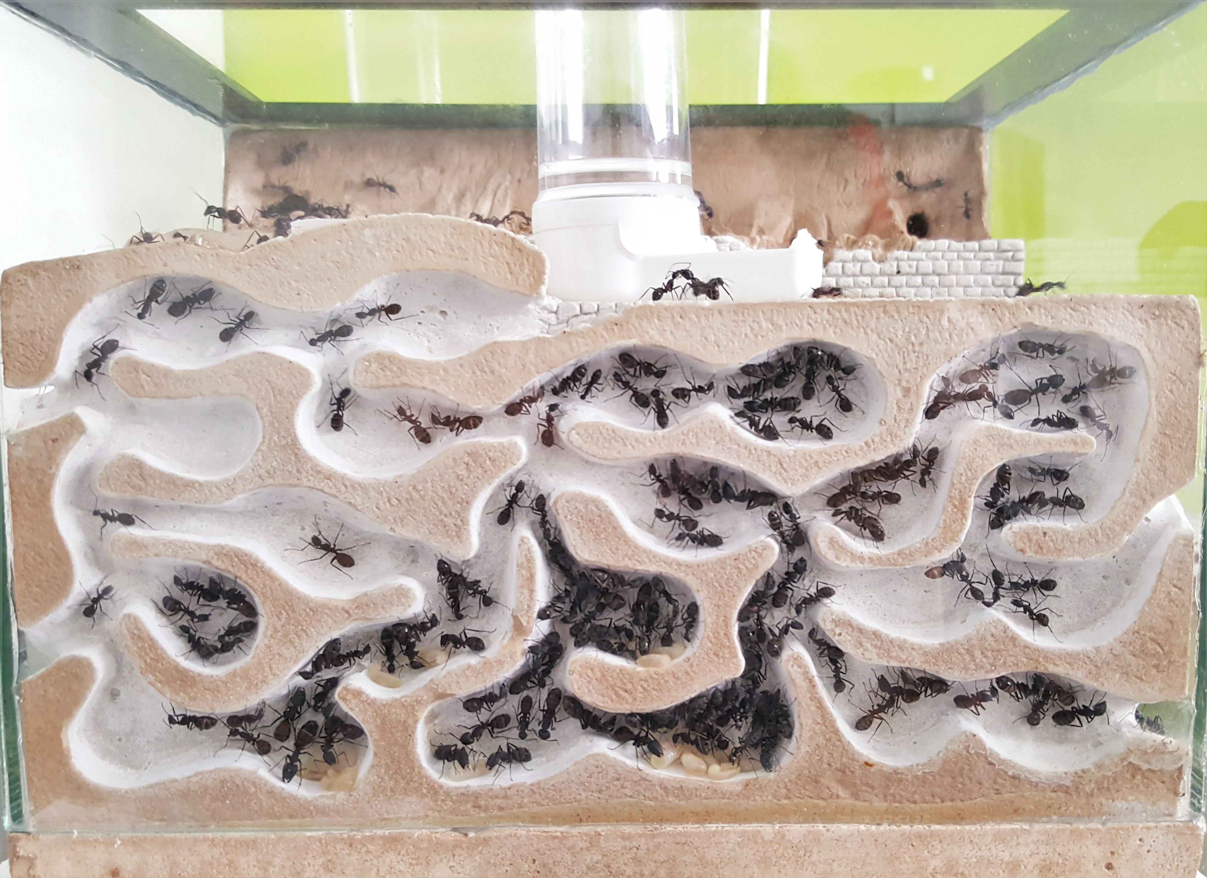 C'est marrant ! Comme pour mon ancienne colonie de Formica fusca, elles migrent rapidement du côté sombre quand on retourne la fourmilière.