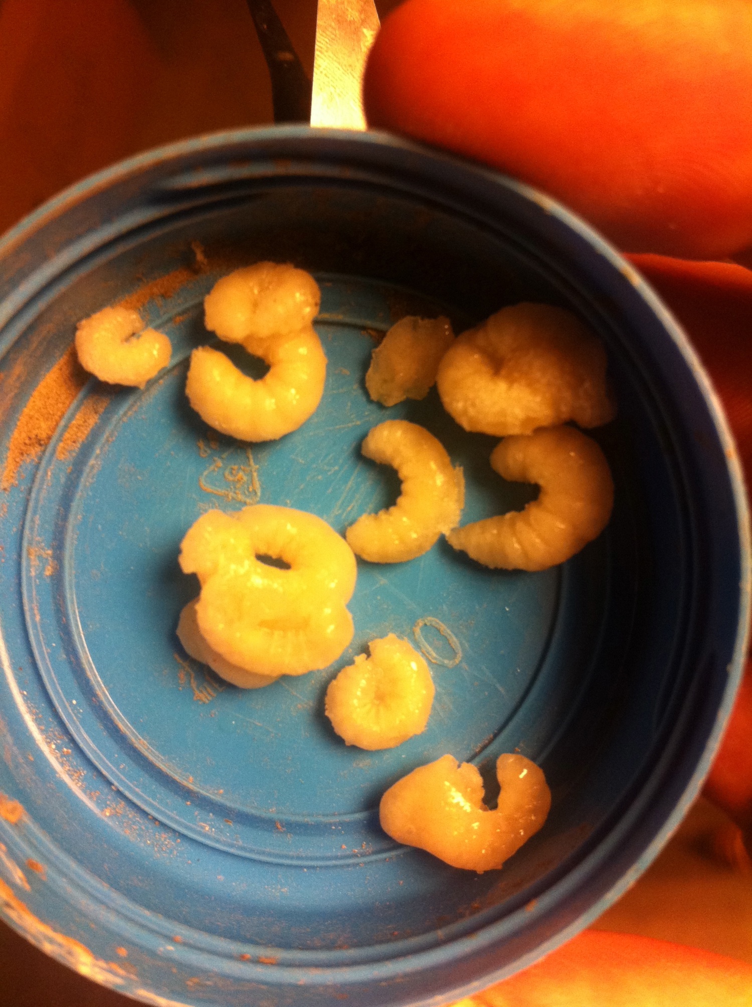 Ça faisait longtemps que ça me trottait dans la tête. Pour ceux qui ne le savent pas, les producteurs de gelée royale, doivent extraire les larves des cupules de reine, pour extraire la gelée. Cela se fait à l'étape de développement où la cellule est gorgée de gelée et donc la larve aussi ! Habituellement ces larves sont jetées à la poubelle, ou alors mangées par certains apiculteurs (il parait que c'est très bon).
