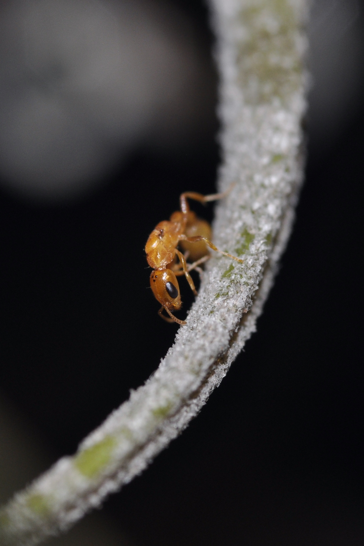Vers mi juillet j'ai eu droit à l'envol d'une dizaine de sexués pendant bien une semaine. Suite à ça, deux autres Tillandsias ont été colonisées. Des ouvrières sont "attribuées" à chaque nid et il n'y a aucune animosité entre les groupes, tout le monde se retrouvant autour de la gamelle.
