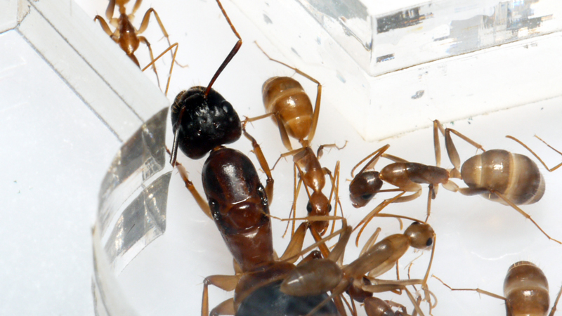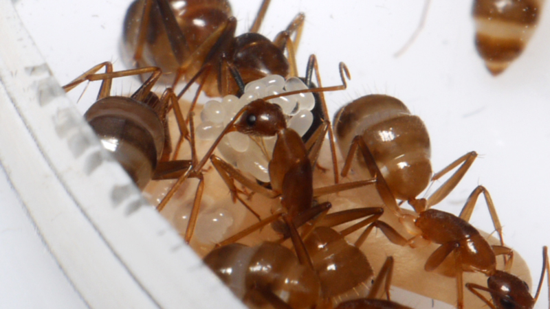 J'ai reçu aujourd'hui les Camponotus cf. pseudoirritans, elles sont 7 ouvrières avec la gyne, leurs couleurs sont superbes et celles de la gyne encore plus ^^.