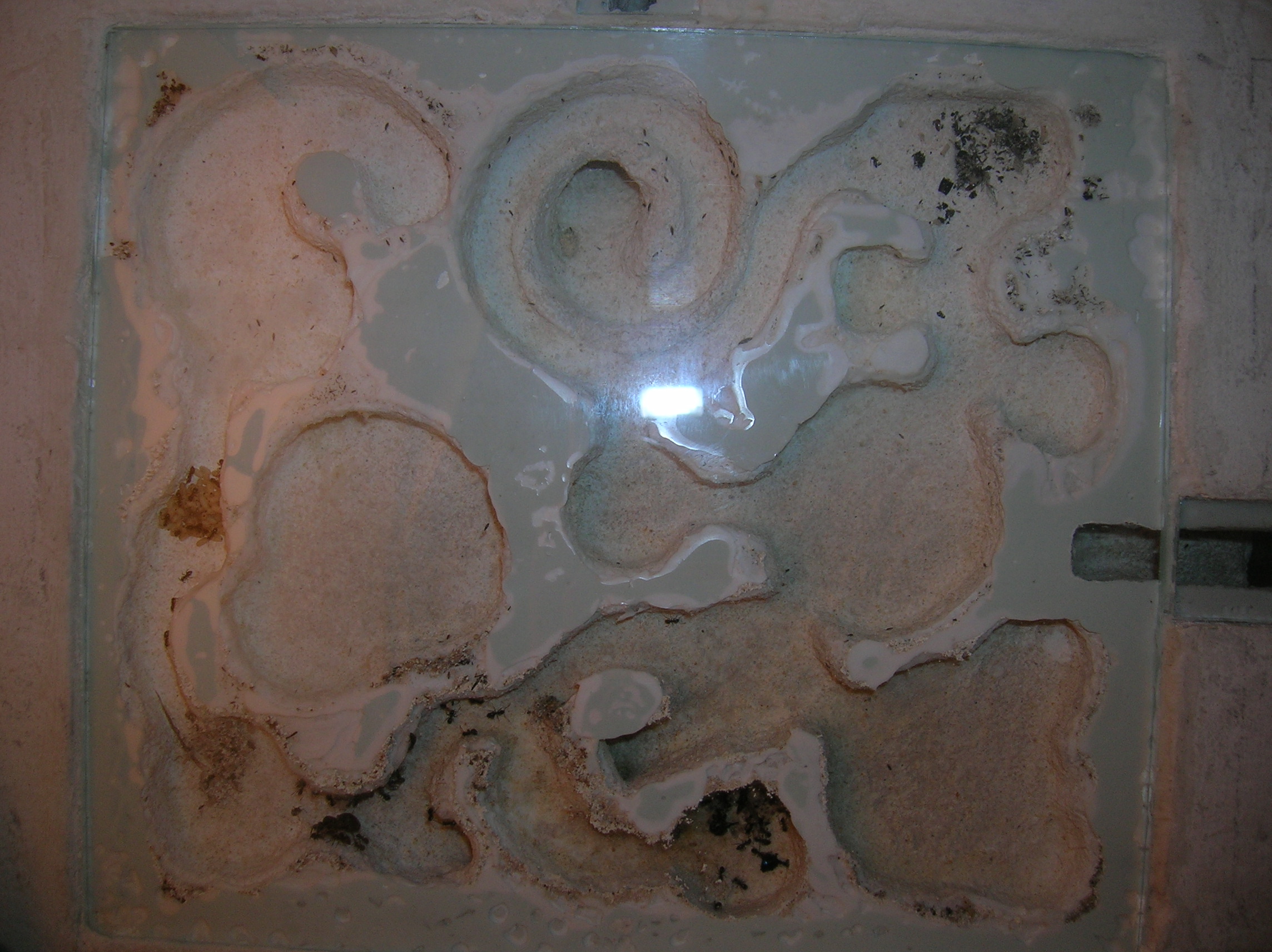 Sur les conseils de Nebula et de Josh34, je vais adjoindre quelques gouttes de vinaigre à l'avenir ; ça ne supprimera peut-être pas ce qu'il y a, mais j'espère que ça ralentira le processus. En tout cas, les fourmis ne semblent pas gênées : Intiya la gyne continue de pondre et ses ouvrières pouponnent.