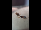 Madame fait 3mm, à une couleur rouge brun sur le thorax. Sur le gastre elle à une bande brune, puis noire, brune, noire, brune, noire, brune.