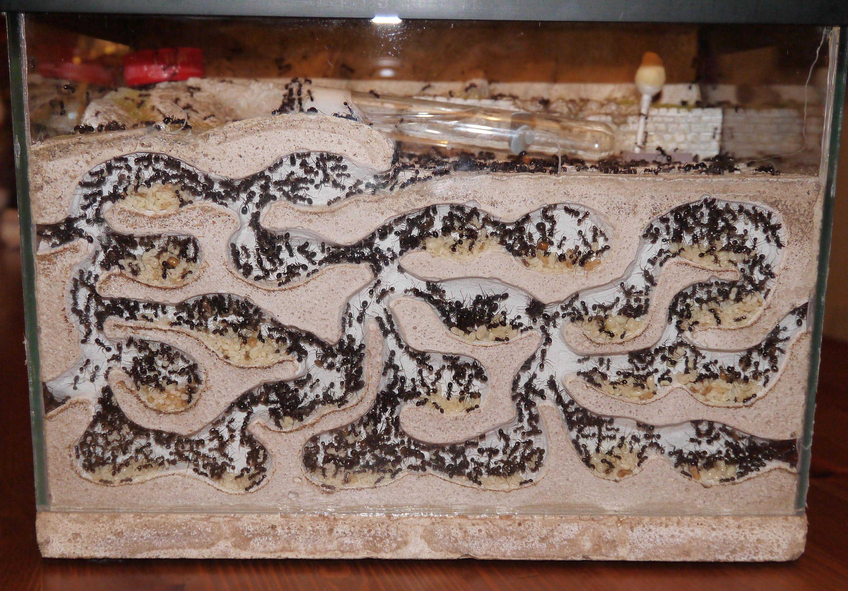 Espèces élevées: Messor barbarus, Camponotus cruentatus, Camponotus lateralis, Formica rufibarbis, Pheidolle pallidula, Lasius niger, Lasius myops, Solenopsis fugax