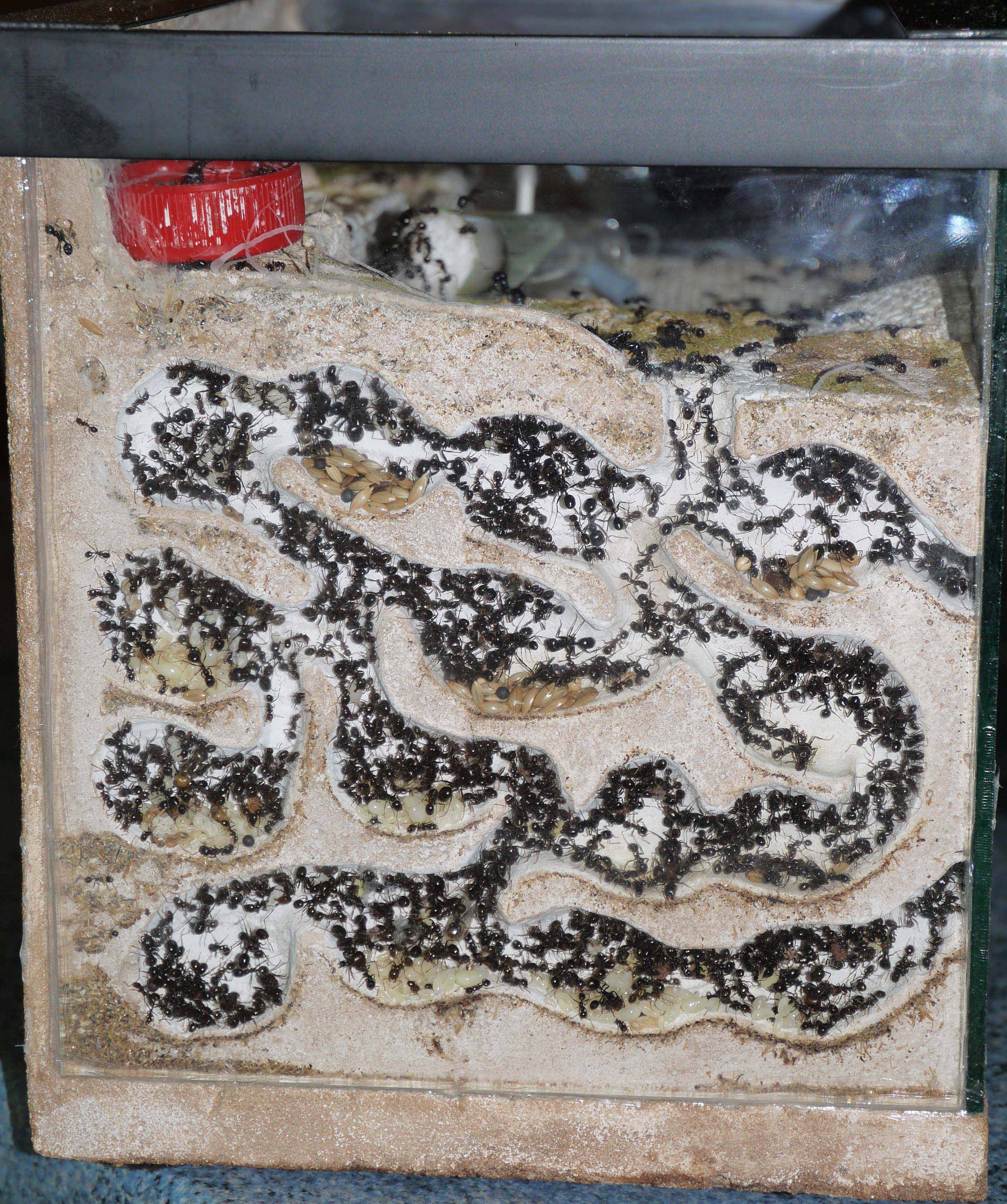 ADC vue de dessus, Ma colonie de Messor barbarus (déjà 6 ans en 2014)