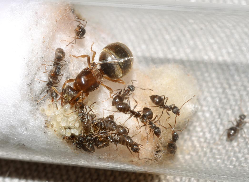 Il y a toutefois une reine sur laquelle je me pose des questions quant à l'espèce car elle a les pattes bien plus clair et le thorax plus rouge sans toutefois être une L. emarginatus... Avez-vous des idées ?