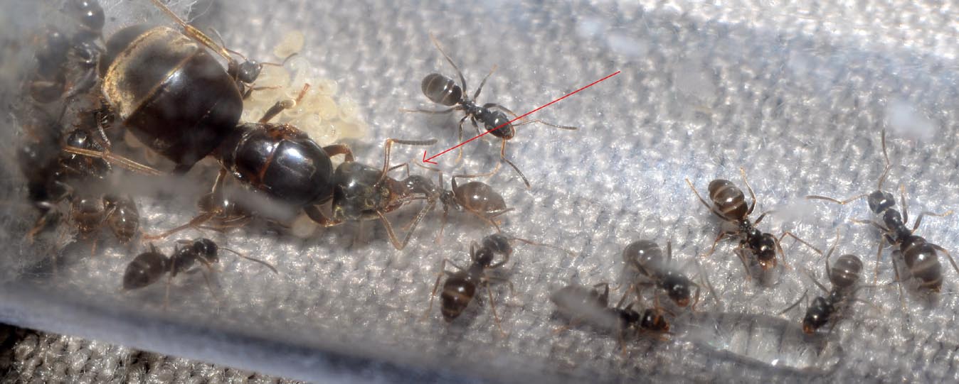 Il y a toutefois une reine sur laquelle je me pose des questions quant à l'espèce car elle a les pattes bien plus clair et le thorax plus rouge sans toutefois être une L. emarginatus... Avez-vous des idées ?
