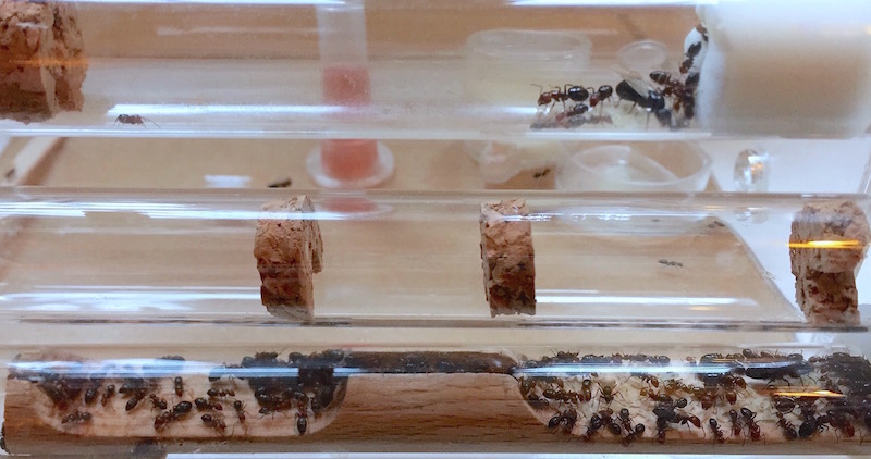 Je trouvais ce système multi-tubes compact assez intéressant, imaginant qu'il permettrait de proposer aux fourmis trois « univers » différents.
