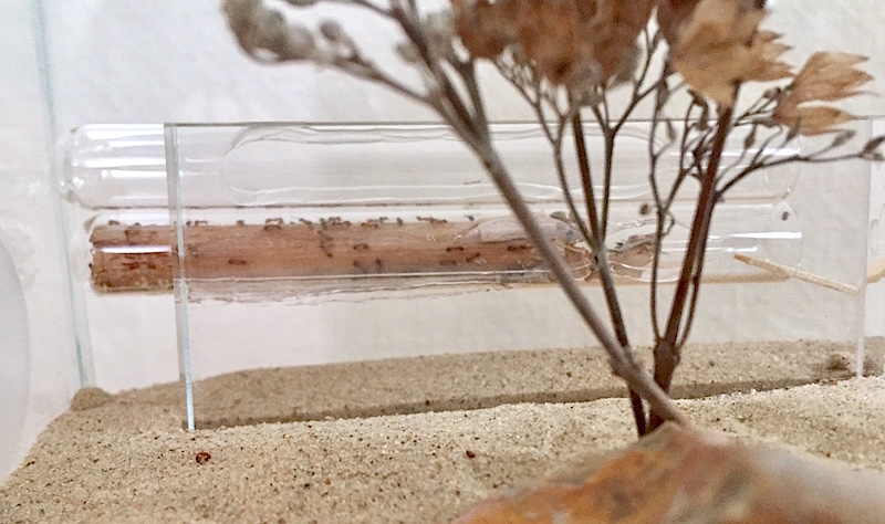 Les fourmis sont bien arrivées dans leur petit tube crasseux, il y a quelques jours maintenant.