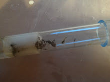 Par contre, ce matin j'ai retrouvé une fourmi sur mon bureau vu qu'à la taille et à l'aspect j'en ai déduit que c'était une des miennes (de plus, il n'y en avait plus que 18, oui ça m'a pris du temps de la compter vu qu'elles courent partout).