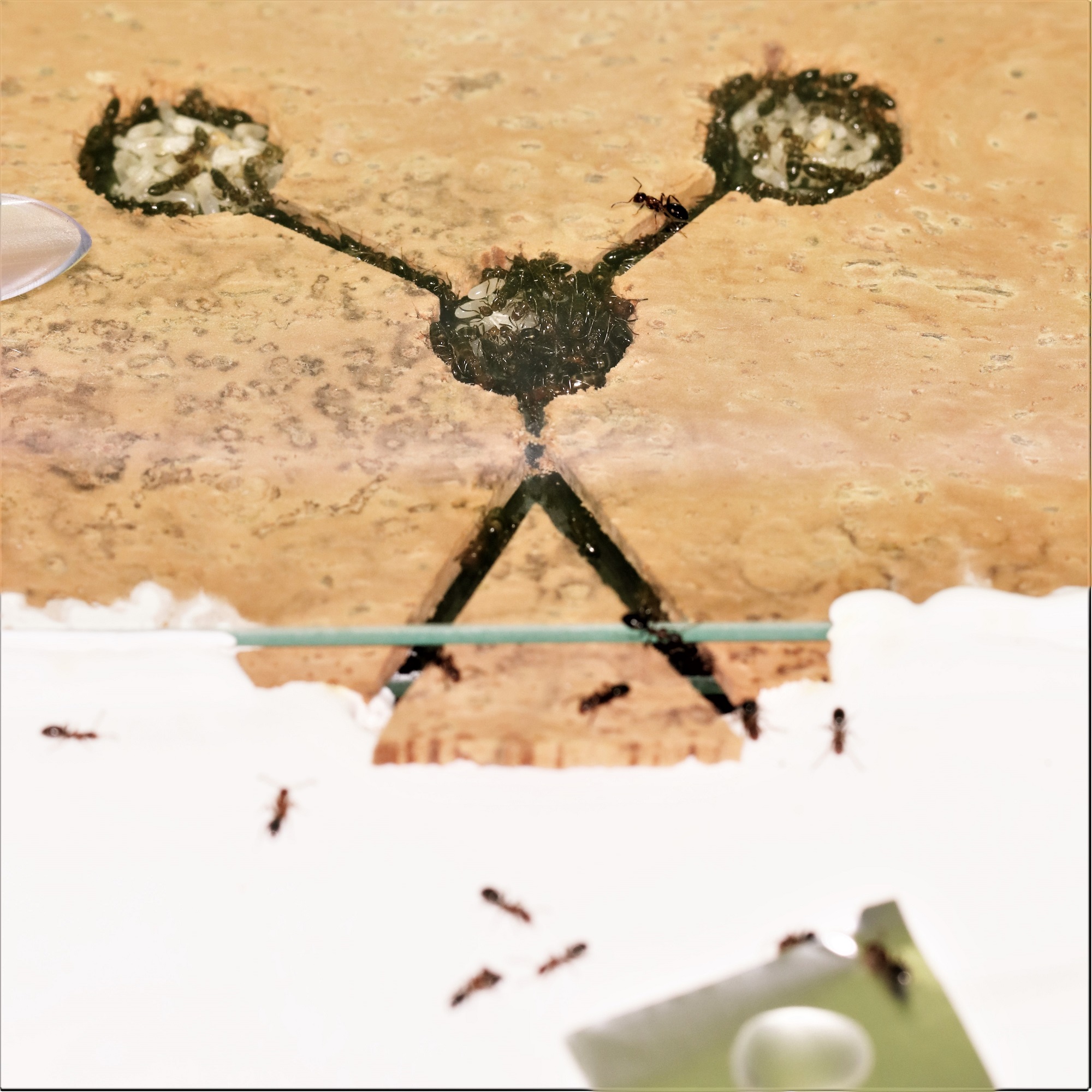 Les C. truncatus n°6 sont toujours proches de la quarantaine d'ouvrières, suite à la vague de naissances du mois passé. Je pense d'ailleurs que l'on peut parler désormais de colonie et non plus de fondation. Le couvain évoluant bien, j'imagine une prochaine vague de naissances en juin. Les ouvrières sont très présentes dans la petite ADC et je pense leur proposer plus grand prochainement.
