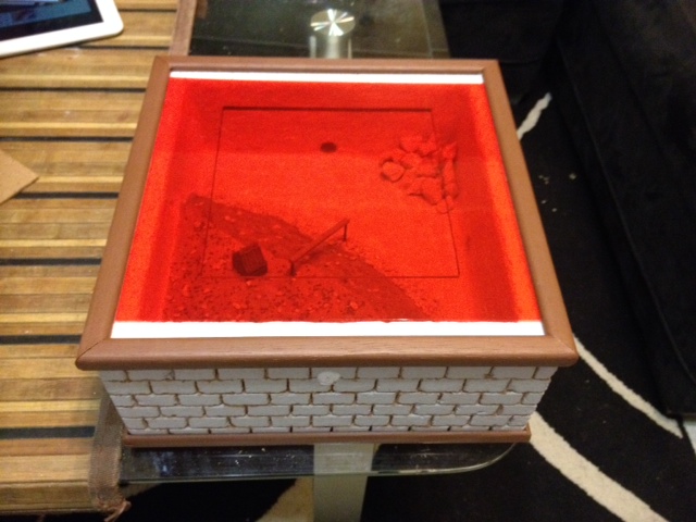 Je n'ai pas collé les cailloux/sable pour un nettoyage plus facile et j'ai utilisé des cures-dents pour la petite maison, la fausse entrée de mine et l'espèce de télésiège (sans siège