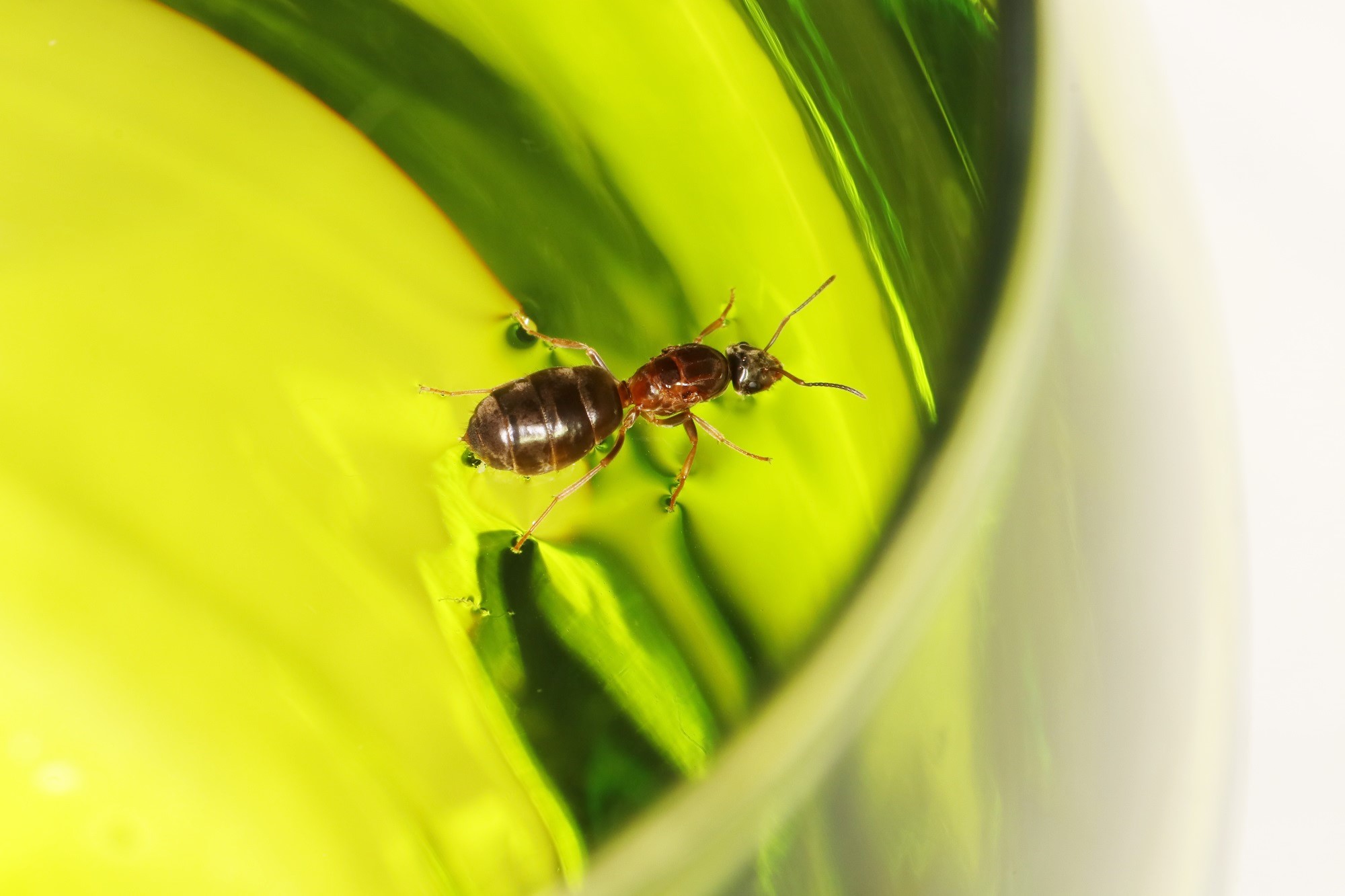 Gyne Camponotus foreli après le bain, dans sa maison avec une petite collation si envie, Mes colonies et expérimentations