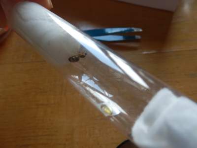 Ne lui donne pas trop souvent de miel, sinon tu peux dire adieux aux ouvrières ! Je pencherais sur une gyne Lasius emarginatus ! ^^