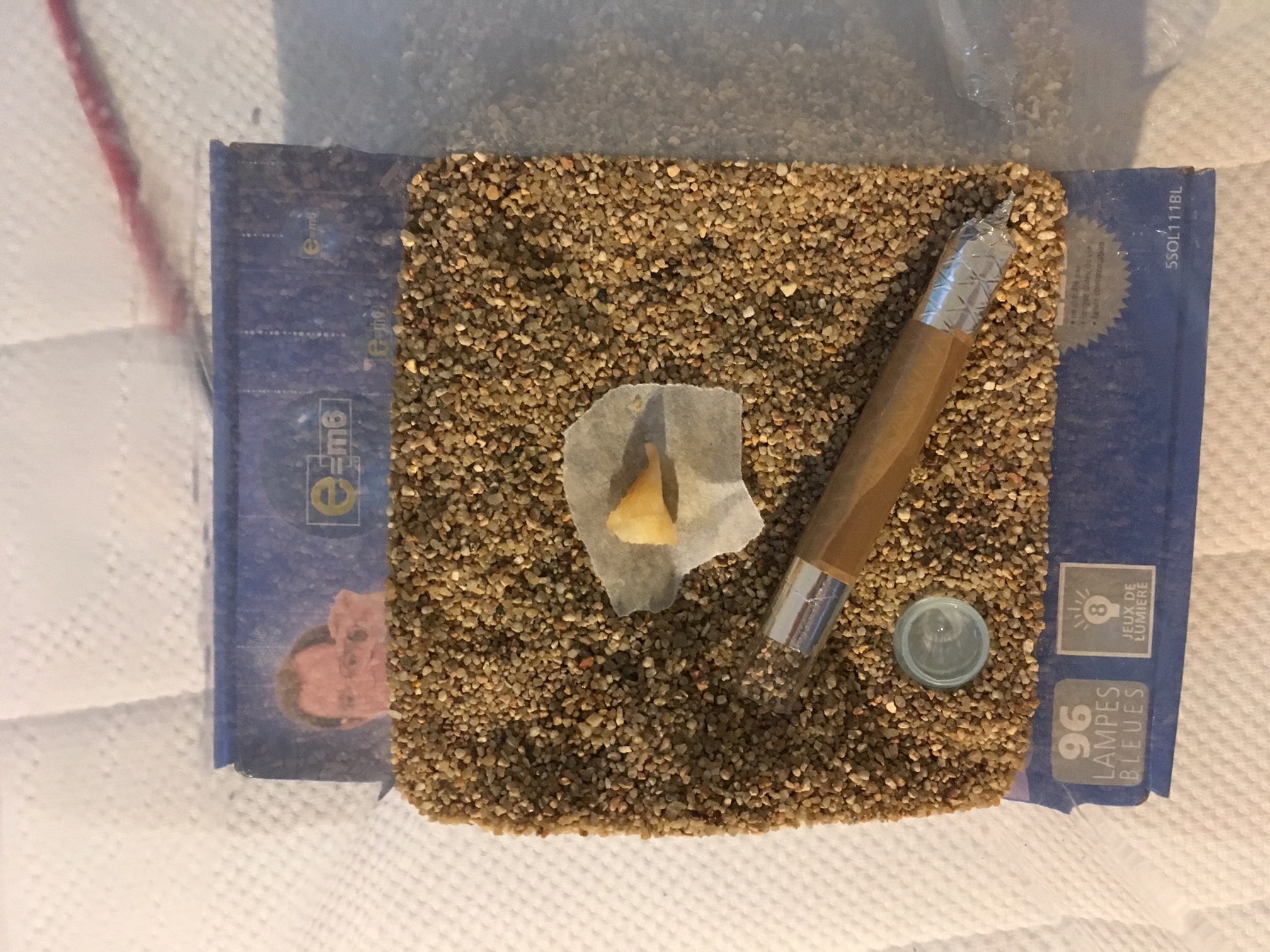 Le sable que j'avais acheté provenait d'une animalerie, mais je n'avais pas pensé à le stériliser. Donc j'en ai racheté et je l'ai mis dans de l'eau bouillante pendant une vingtaine de minutes avant de le placer dans une ADC que j'avais nettoyé au préalable.