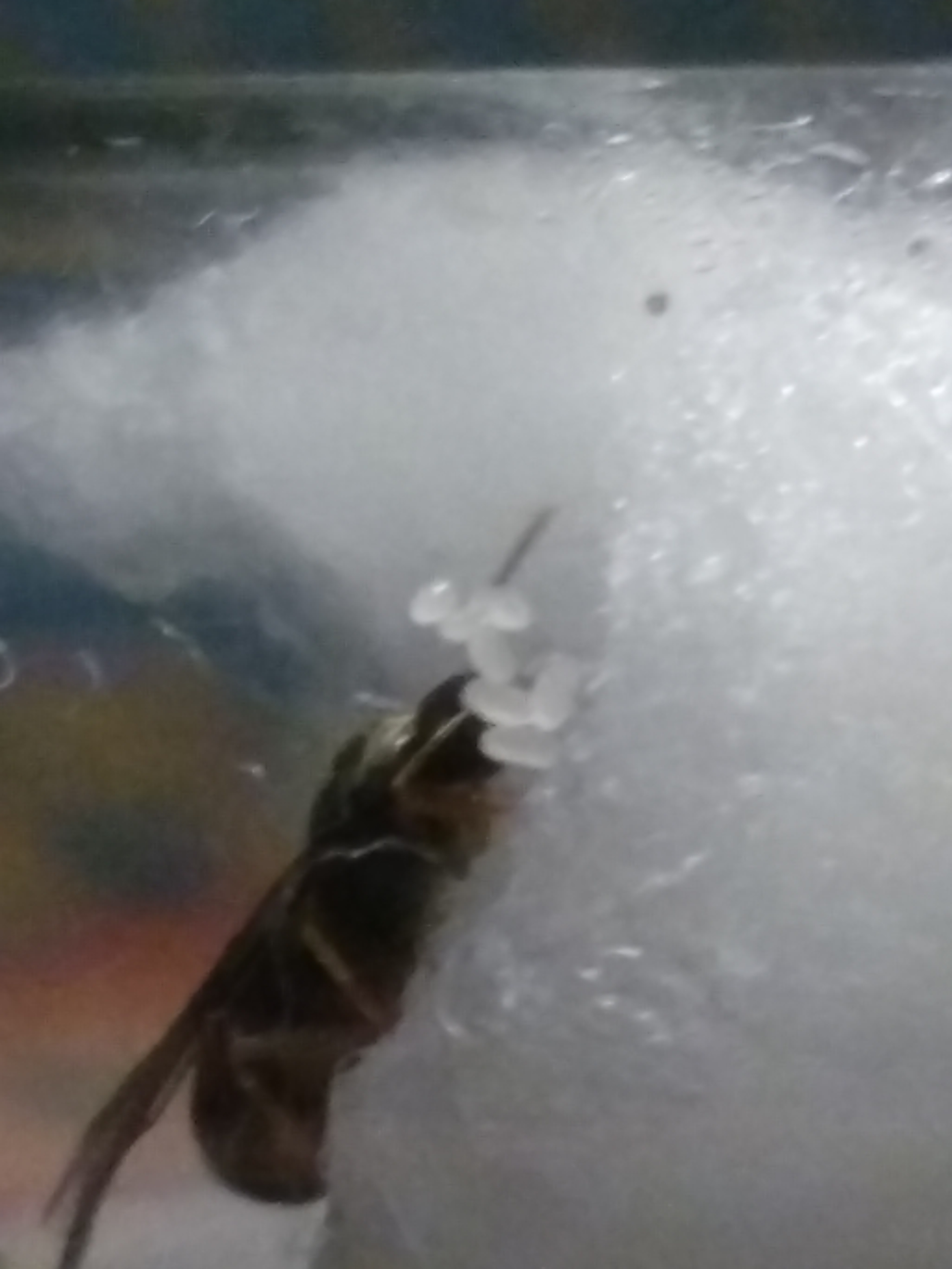 Sur la 2ième photo, on voit des larves, pour la petite histoire j'ai voulu la remettre dehors car madame n'avait pas pondu et elle ne voulait pas partir du tube et la surprise plutôt inattendue après, faut voir si il y a des ouvrières a l’intérieur.