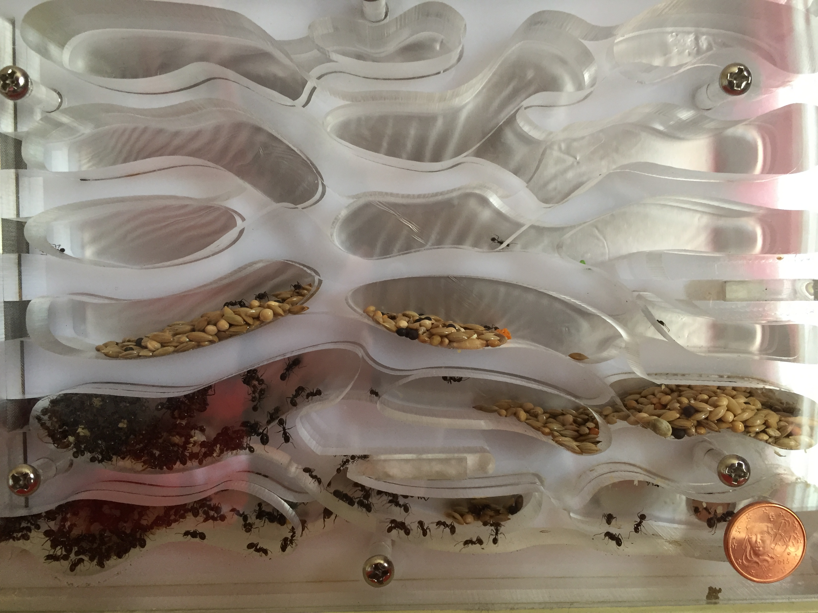 Les fourmis ne sortent presque jamais à part pour aller chercher les graines.
