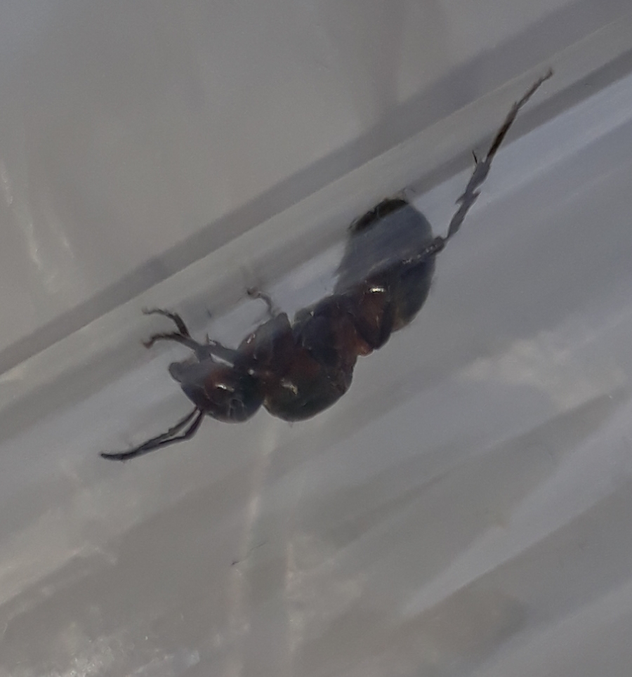 Abdomen noir brillant / jonction thorax abdomen orange clair (ça ne ressort pas beaucoup sur les photos).