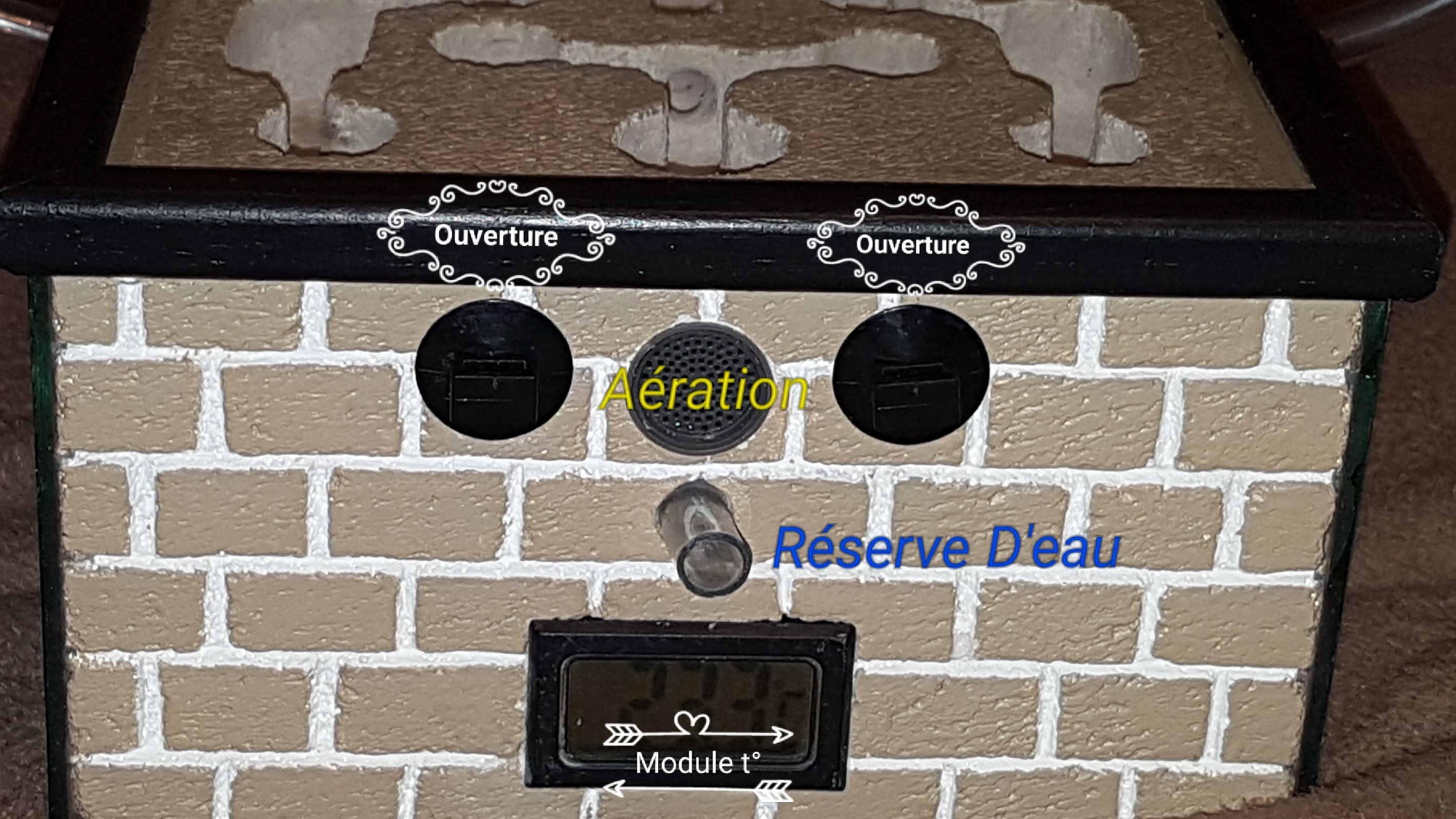 - la réserve d'eau a été encastrée sous le nid et collée pour plus de praticité.
