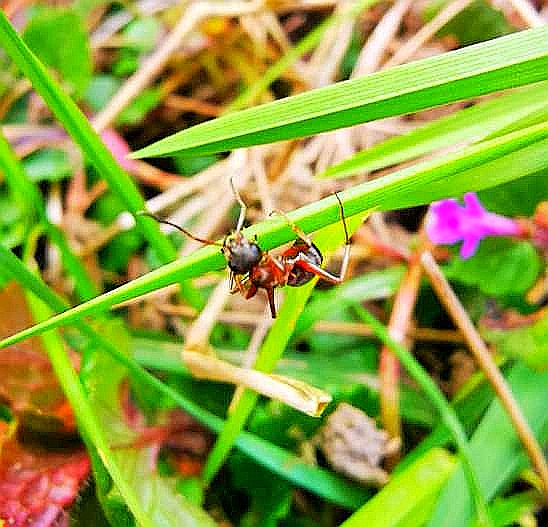 Formica rufibarbis dont le gastre a pris un méchant coup.