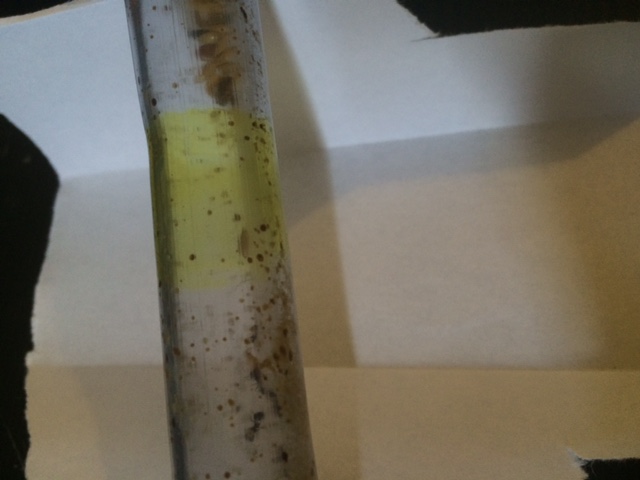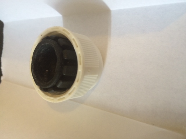 Je décide donc samedi de retirer l'aire de récolte. L'opération est simple puisque j'ai utilisé un presse-étoupe afin de fixer mon tuyau de liaison à l'aire de récolte. Au moment du démontage, je remarque que mon tuyau a pris une teinte jaune au niveau du contact avec le joint du presse-étoupe et qu'une odeur très forte s'en dégage. Cela ressemble à une odeur de goudron ou de caoutchouc brulé. Une fois démonté et même sans mettre le nez dessus l'odeur est extrêmement désagréable et le fait d'avoir touché ce joint a imprégné l'odeur sur mes doigts.