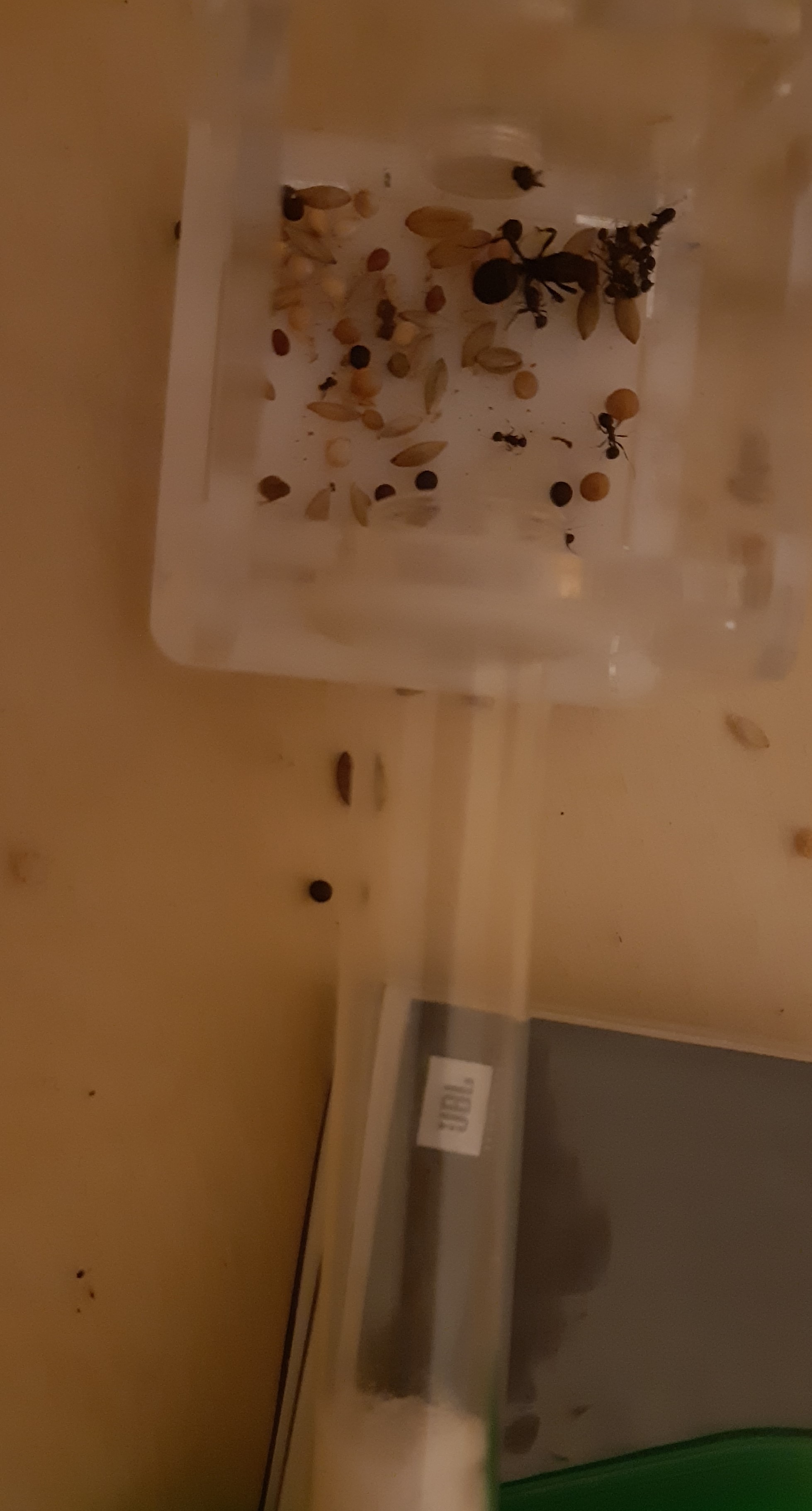 Quand je les ai reçues chez moi, la réserve d'eau était sèche alors je les ai transférées dans leur nouveau nid. Malheureusement, elles restent dans l'aire de chasse et je n'ai aucune idée de comment les faire bouger dans le tube à essai