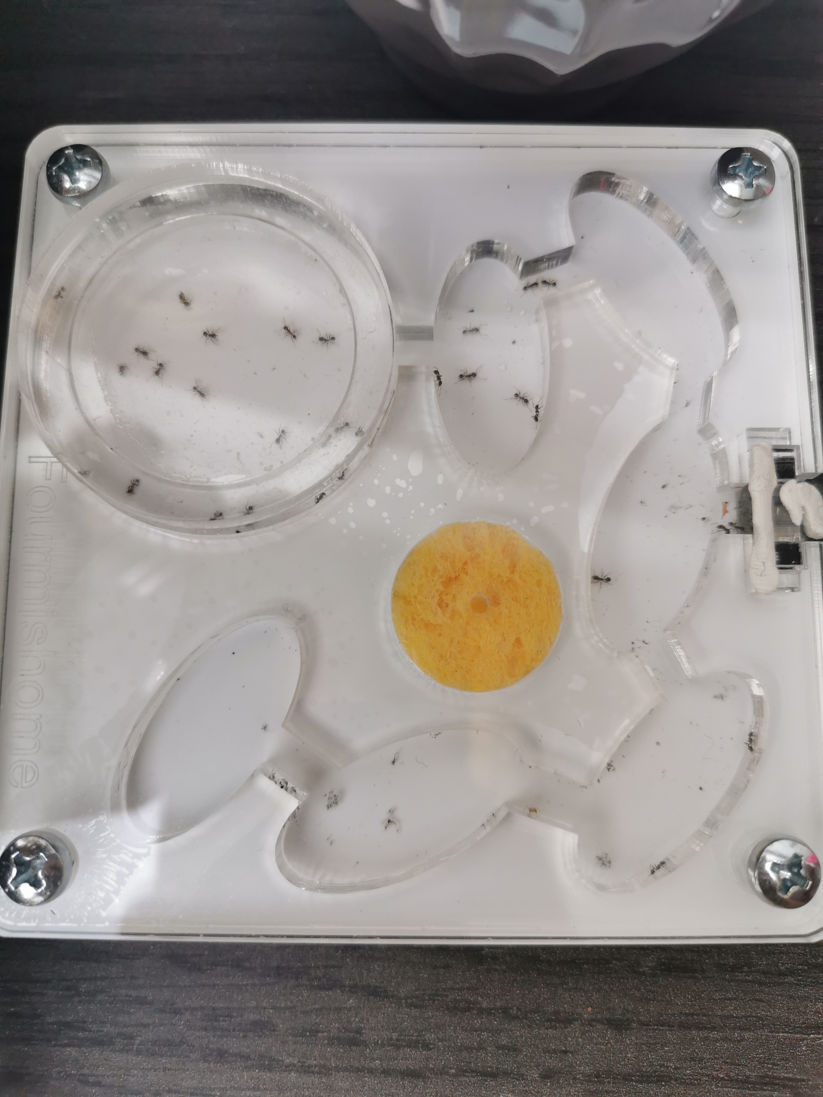 Je viens vers vous aujourd'hui car je connais un problème de mortalité chez mes Pheidole pallidula. Reçues en juillet dernier, j'ai au moins une cinquantaine d'ouvrières. J'ai souhaité les faire déménager dans un nid de chez Fourmish**e (que j'ai bien rincé et nettoyé à l'eau). Je m'en servais comme aire de chasse auparavant et j'avais remarqué quelques décès, mais je pensais que c'était simplement la première génération (bien que cela me semble étrange vu que les premières ouvrières ont à peine plus de 6 mois).