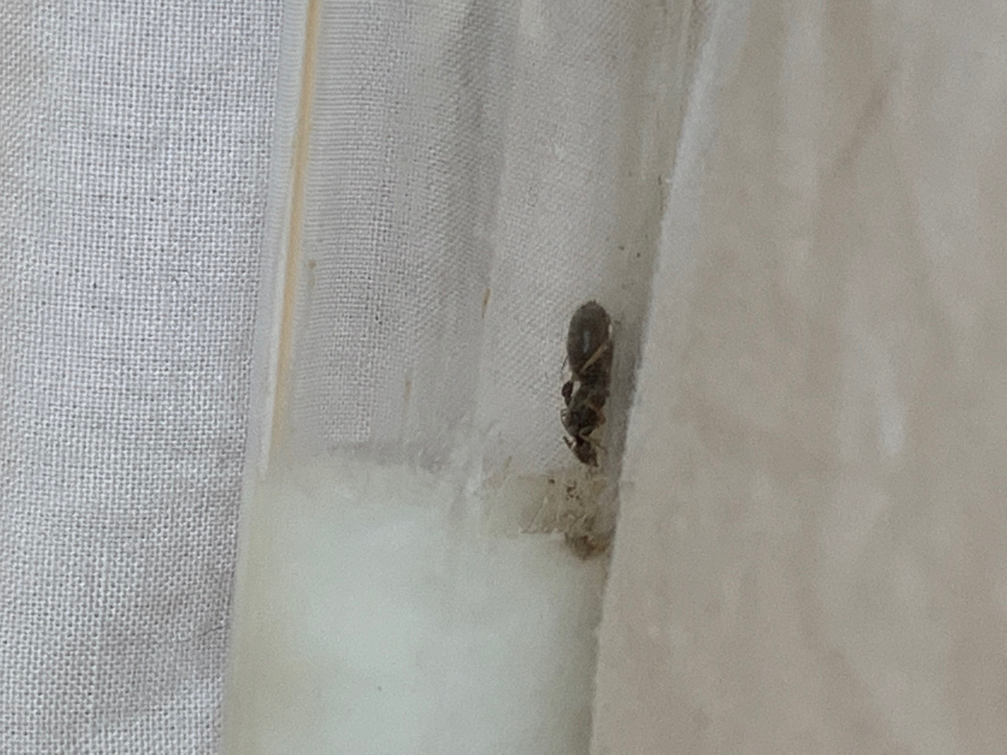 Par rapport à d'autres reines Lasius que j'ai pu avoir il y a quelques années ou voir lors des essaimages, je la trouve bien petite.