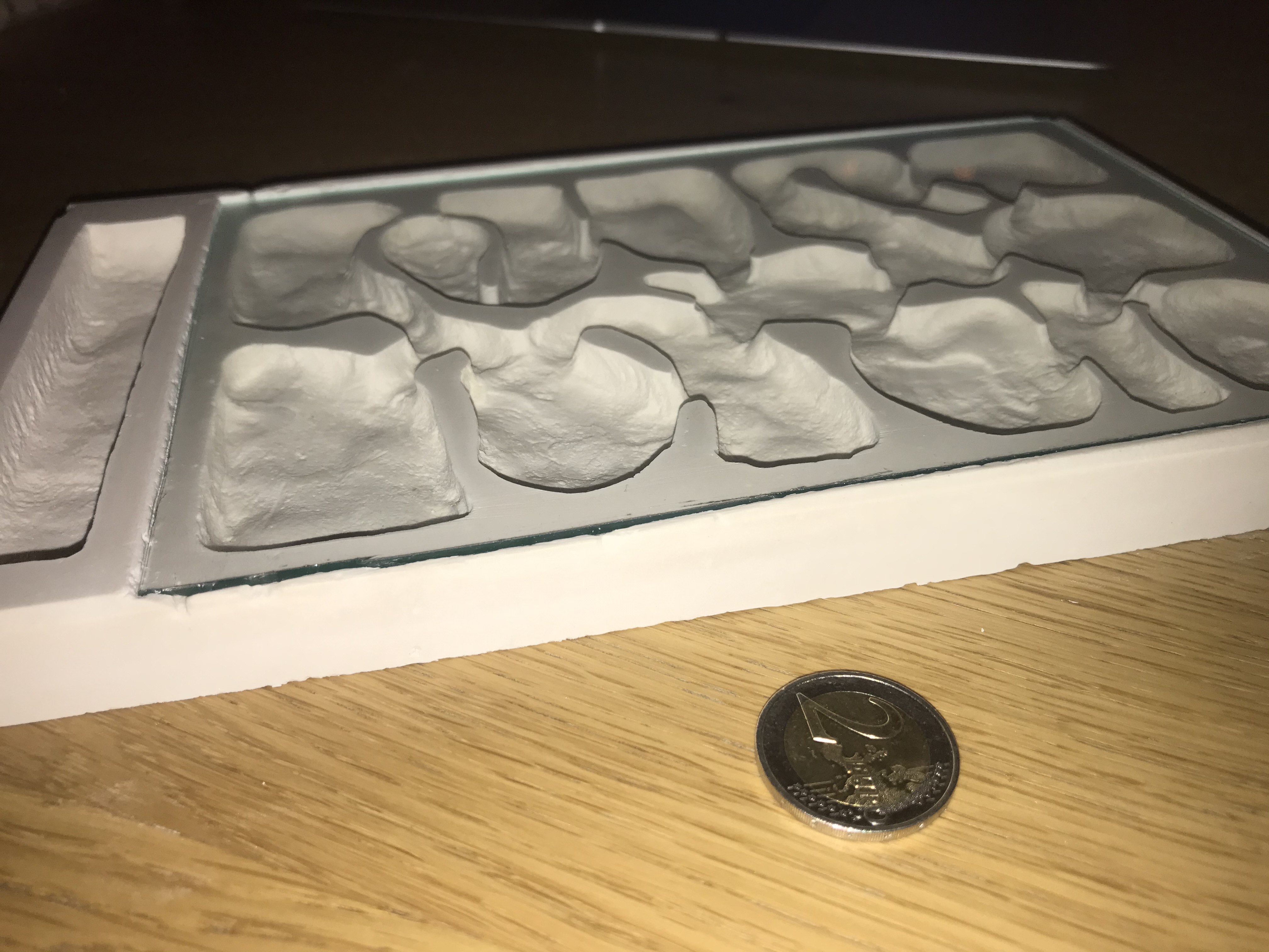 Tout d'abord concernant la matière, je suis parti sur un mélange plâtre résiné et plâtre de Paris. En effet, j'ai cru lire dans d'autres posts que le plâtre résiné n'était pas perméable, qu'il ne permettait pas d'avoir une bonne hygrométrie dans le nid (vrai ou faux d'ailleurs ?). Du coup, je suis parti sur un mélange 50:50 de plâtre résiné et plâtre de Paris.