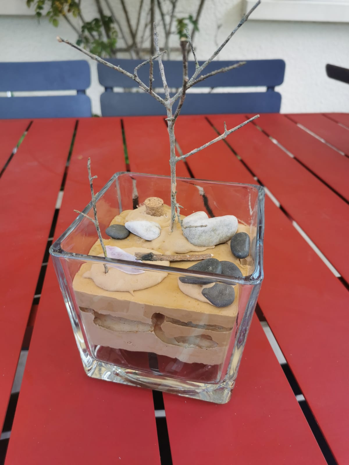Pour faciliter le démoulage de ton bloc tu peux incorporer un morceau de béton cellulaire ou un morceau de bois, afin de te fabriquer une prise pour pouvoir tirer sur le moulage pour le sortir sans risque de casser ton vase en verre. À la fin, avant de remettre ton moulage dans le récipient, Tu pourras très bien couper ce morceau de bois et couler une nouvelle couche de plâtre pour camoufler et décorer l'ADC.