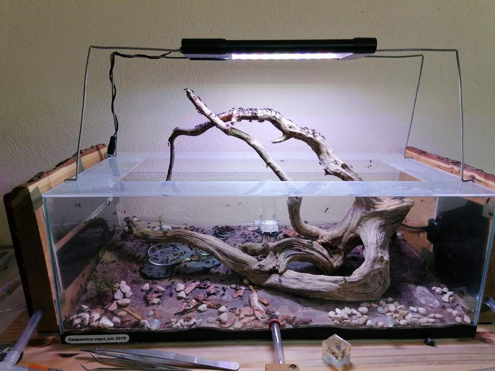 Pour céder cette colonie, il faudrait qu'elle participe à un chouette projet (d'autant plus que le set-up est visuellement très classe) avec des personnes sérieuses pour s'en occuper. J'ai vécu la séparation avec mes Lasius niger avec un peu d'amertume. Elles sont actuellement dans un bar/restaurant, mais l'effectif n'est plus ce qu'il était, sans nul doute à cause du manque de soins. Je ne veux pas revivre ça avec mes belles Camponotus vagus.