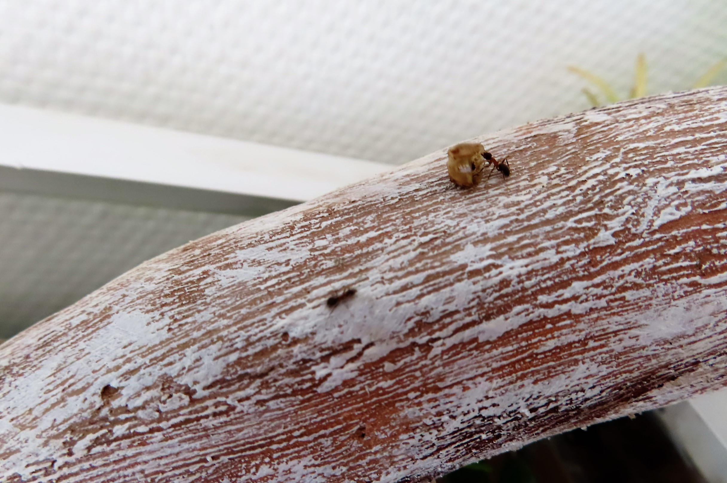 Lasius emarginatus en échappée belle sur le mur situé derrière.