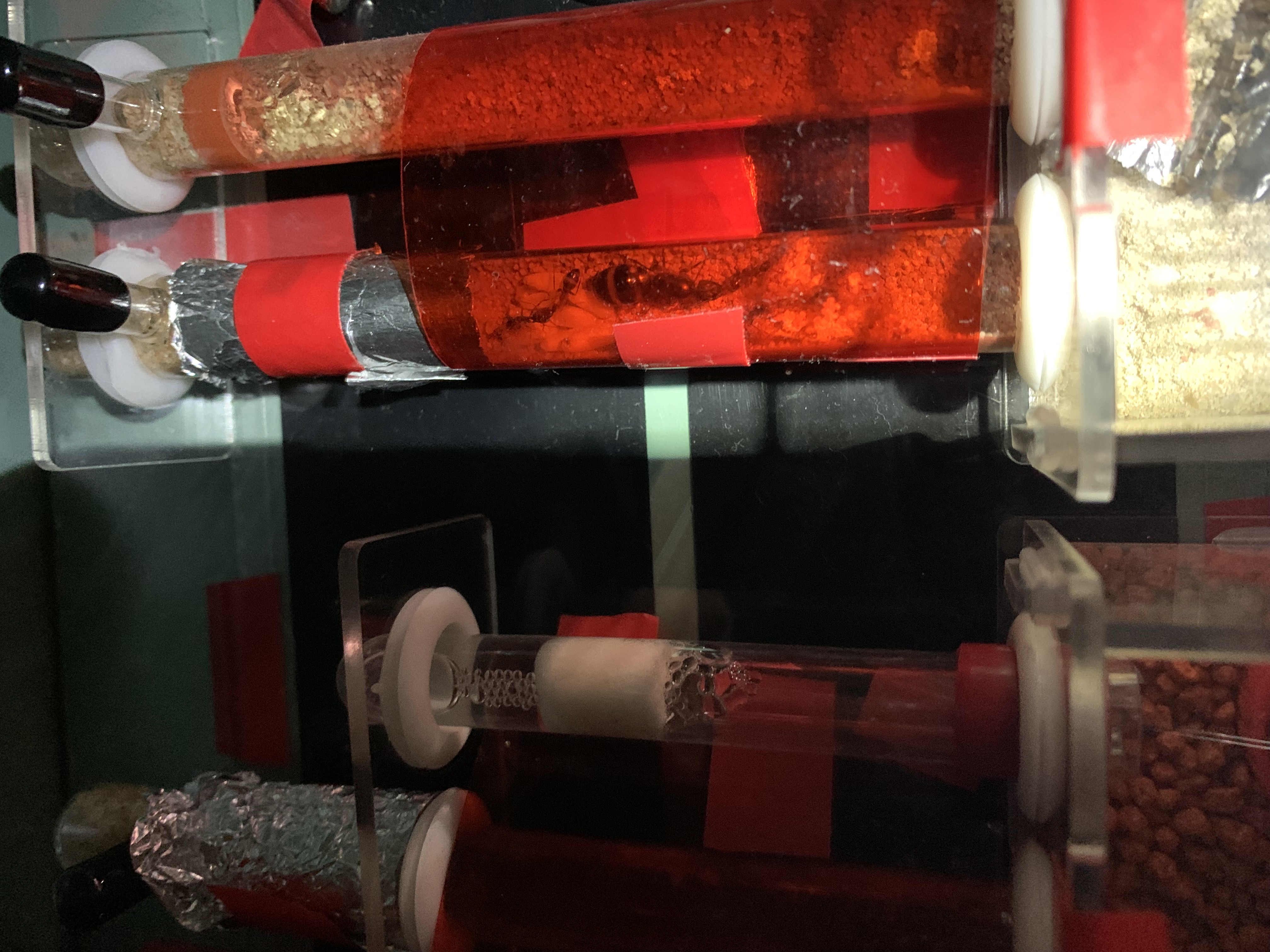 Changement d’organisation. Les cocons ont été déposé dans l’autre éprouvette.
