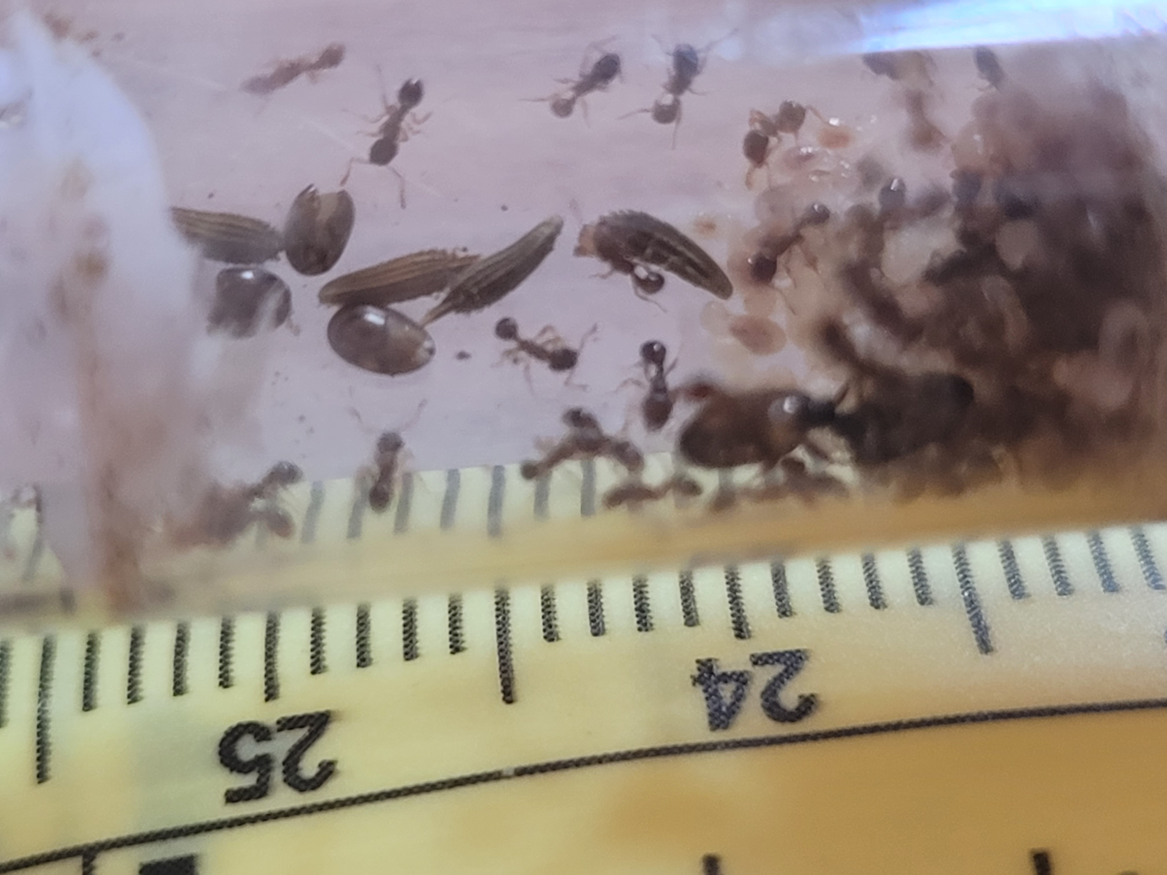 Tetramorium caespitum très fréquente au Québec et dont le nom français, là-bas, est "Fourmi des pavés" (nom anglais "Pavement Ant") ; mais chez nous, en France, on l'appelle plutôt "fourmi des gazons". Elle est