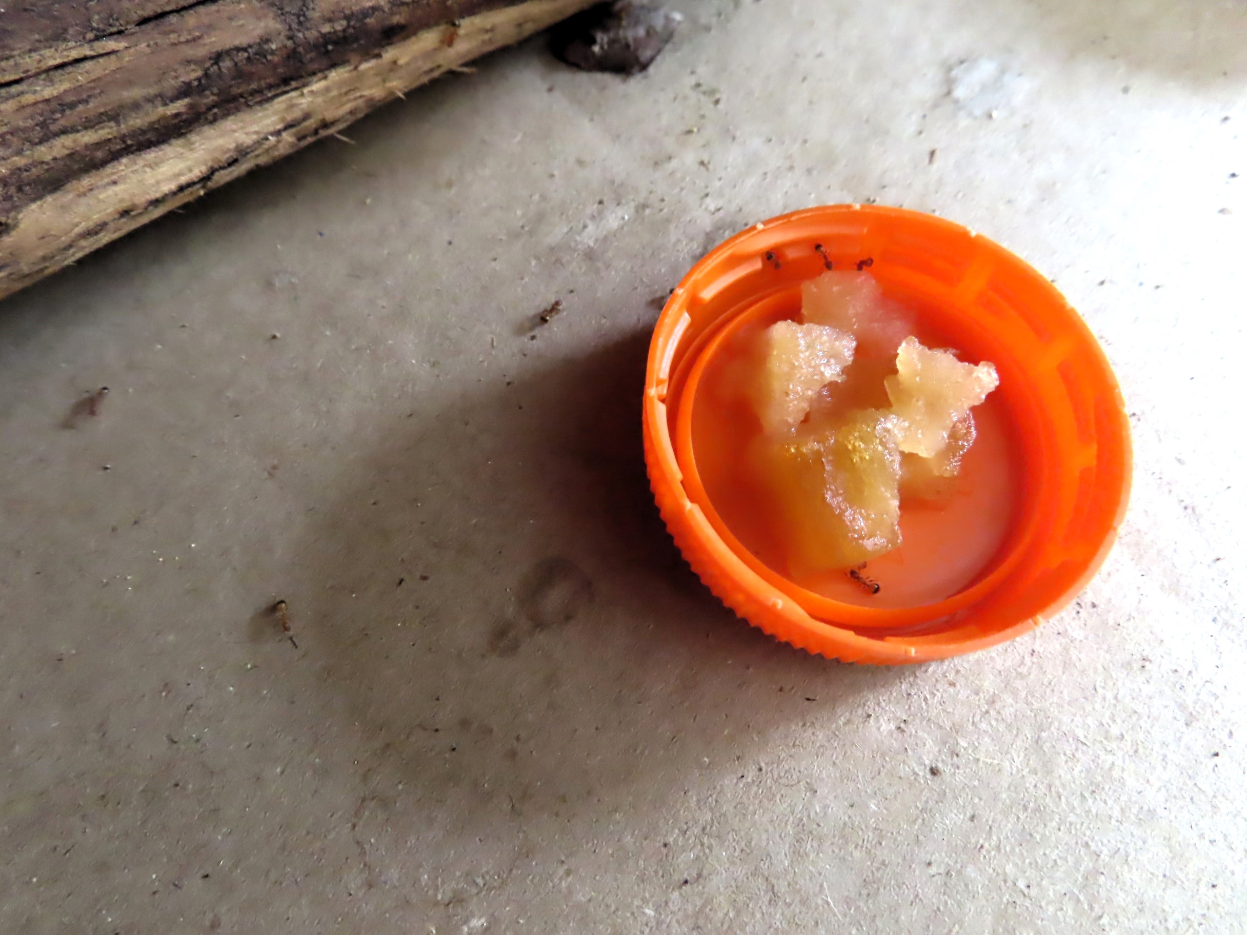 En même temps qu'elles, quoi que moins nombreuses, mes Lasius niger se sont jetées sur la nourriture ajoutée en complément au Bhatkar qu'elles grignotaient également hors du nid dans les mêmes conditions hivernales que leurs cousines bicolores.