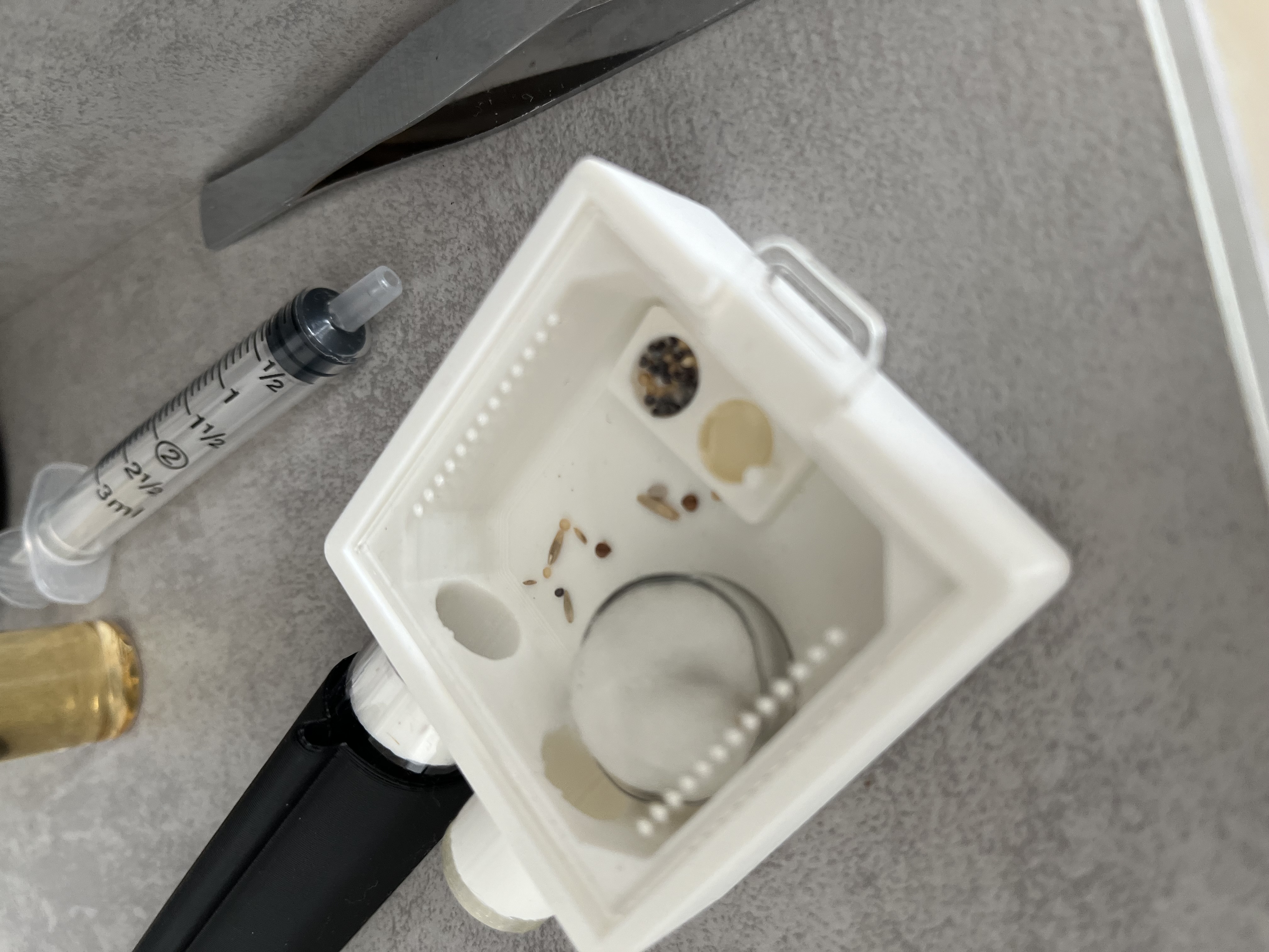 J’ai refermer le tube débrancher l’air de chasse, mis dans un carton loin de toute vibration le plus au calme possible avec une température ambiante à 23.