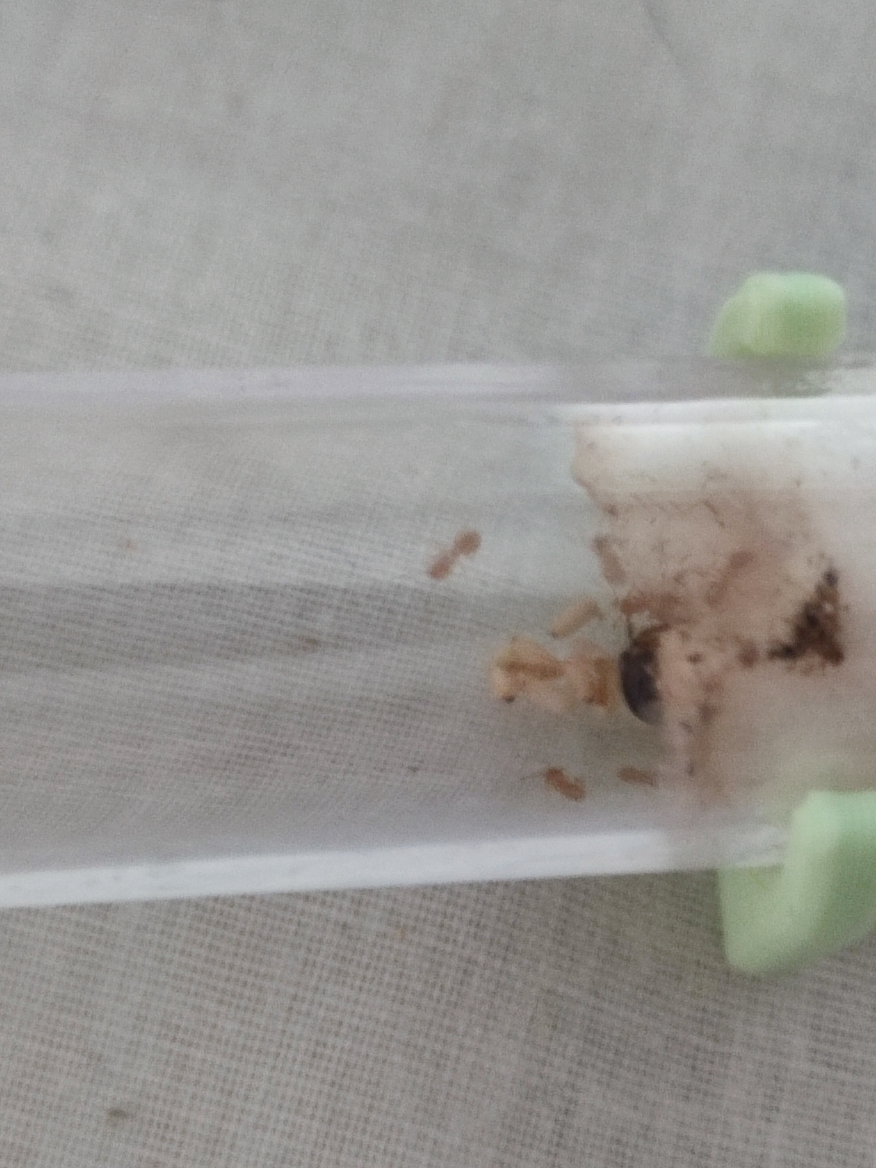 Je m'appelle Maya, je suis une gyne Lasius flavus, je dois mon petit nom à ma couleur miel, enfin, surtout à celle de mes filles, et je compte bien devenir une reine digne de son nom avec des centaines d'ouvrière à mon service pour répondre à mes besoins et étendre mon empire. L'humaine qui s'occupe de moi à déjà bien honoré ma personne en m'offrant un liquide sucré que mes ouvrières ont englouti avec plaisir avant de m'y faire gouter. Elle a aussi eu la bonne idée d'offrir un morceau de mouche pour nourrir mes larves, même si mes ouvrières, un poil téméraire, ont décidé de me l'amener directement, j'ai dû leur dire de le ramener à l'entrée de notre tube, ma noble personne ne doit pas être mise en contact avec une vulgaire mouche, même morte et en morceaux.