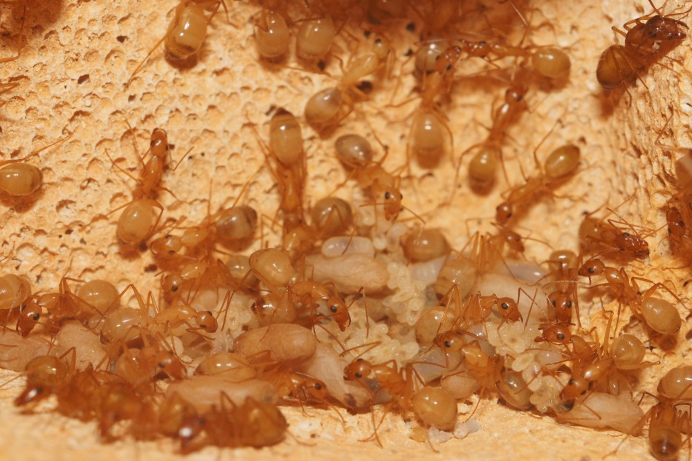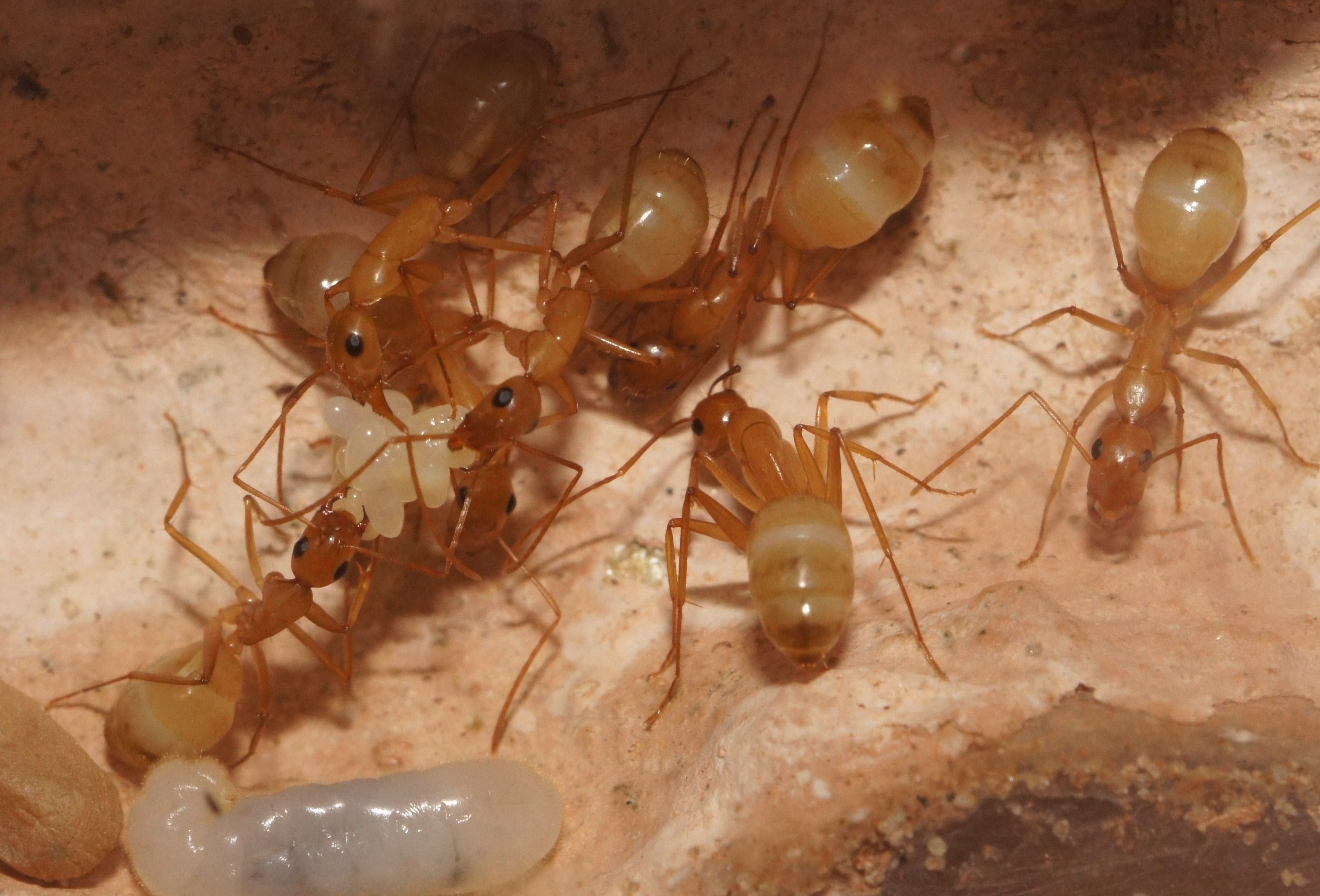 Le développement n'a pas été fulgurant, loin de là. La colonie possède un effectif d'environ 80 âmes, ce qui est assez faible au regard des autres colonies de Camponotus africaines que possèdent mes illustres collègues. Je pense qu'il faut que je réajuste quelques paramètres comme chaleur et hygrométrie dans le nid et que j'améliore l'apport en protéines ainsi que sa variété, les grillons c'est bien mais c'est mieux de diversifier.